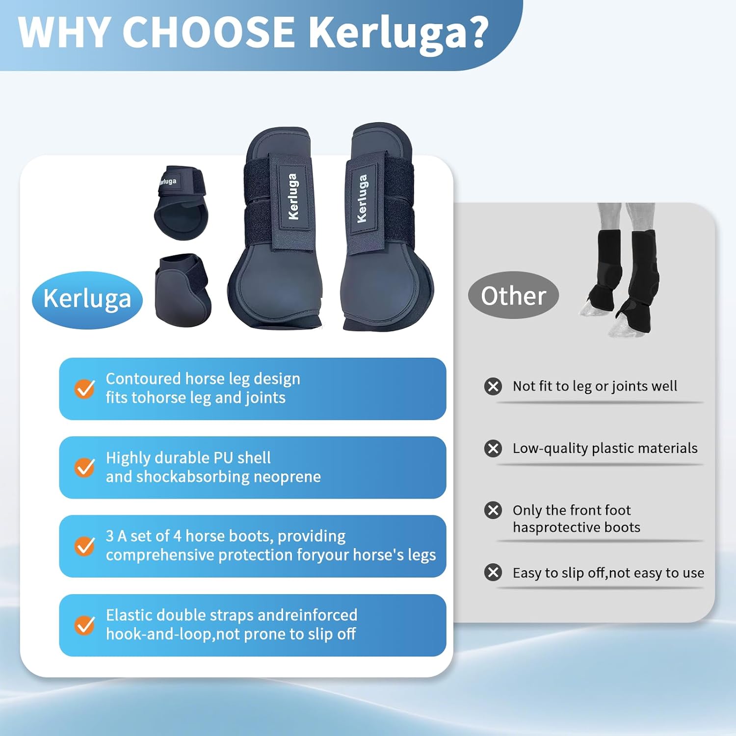 • SHOCK ABSORPTION & PROTECTION: The Professional Shock Absorbing Horse Boots are made of a highly durable PU shell and shock absorbing Neoprene, give horse extra tendon support and heavy-duty protection from his back hooves, keep their vulnerable tendons and ligaments well protected for a long time. Perfect for Horse Show Jumping Tendon Boots needs