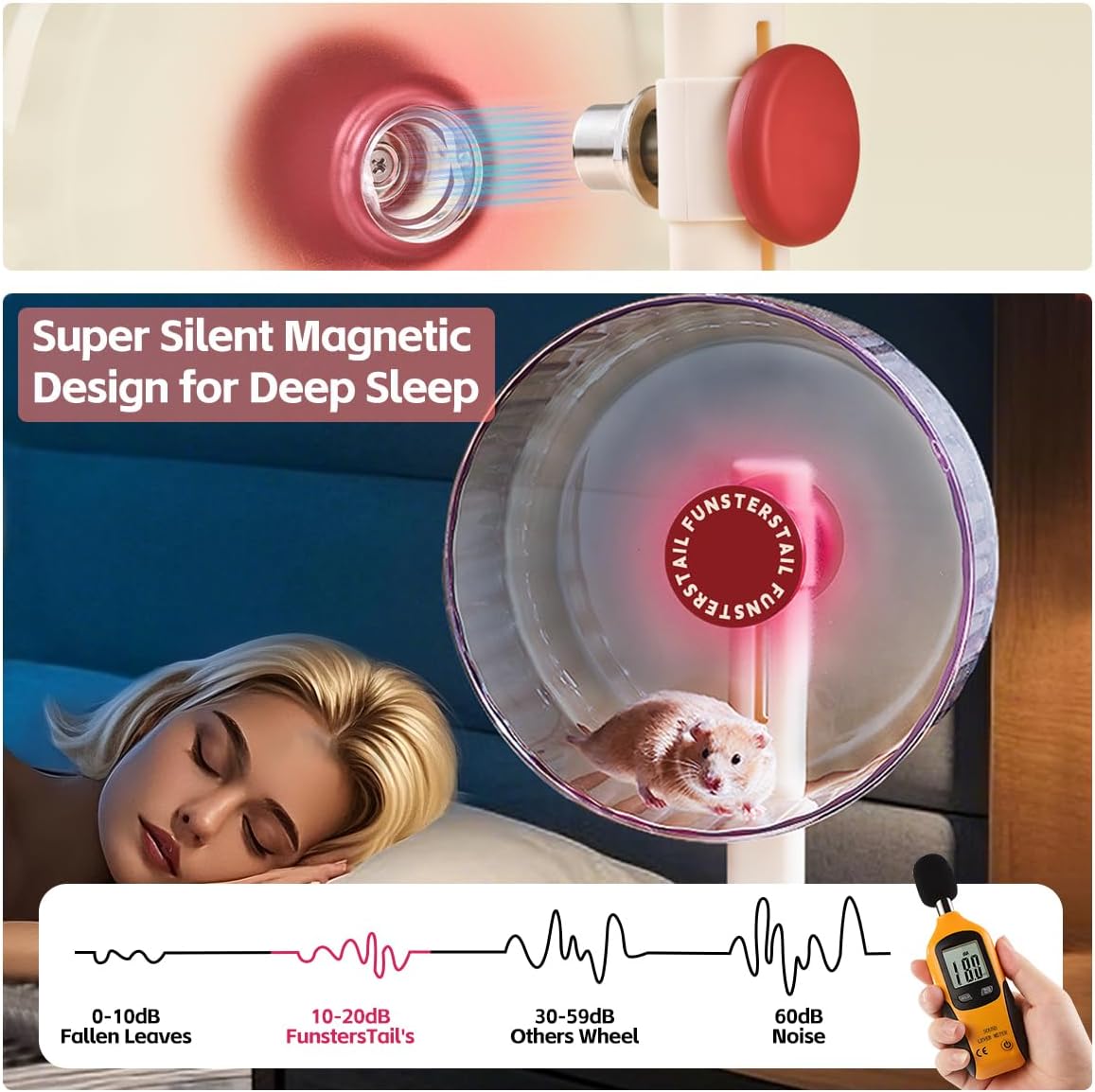 • Super Silent Night Runs: Our magnetic axle design eliminates friction noise, making it ideal for late-night use. Perfect for light-sleeping owners or cage setups—your dwarf hamster or hedgehog can run freely without disturbing your sleep