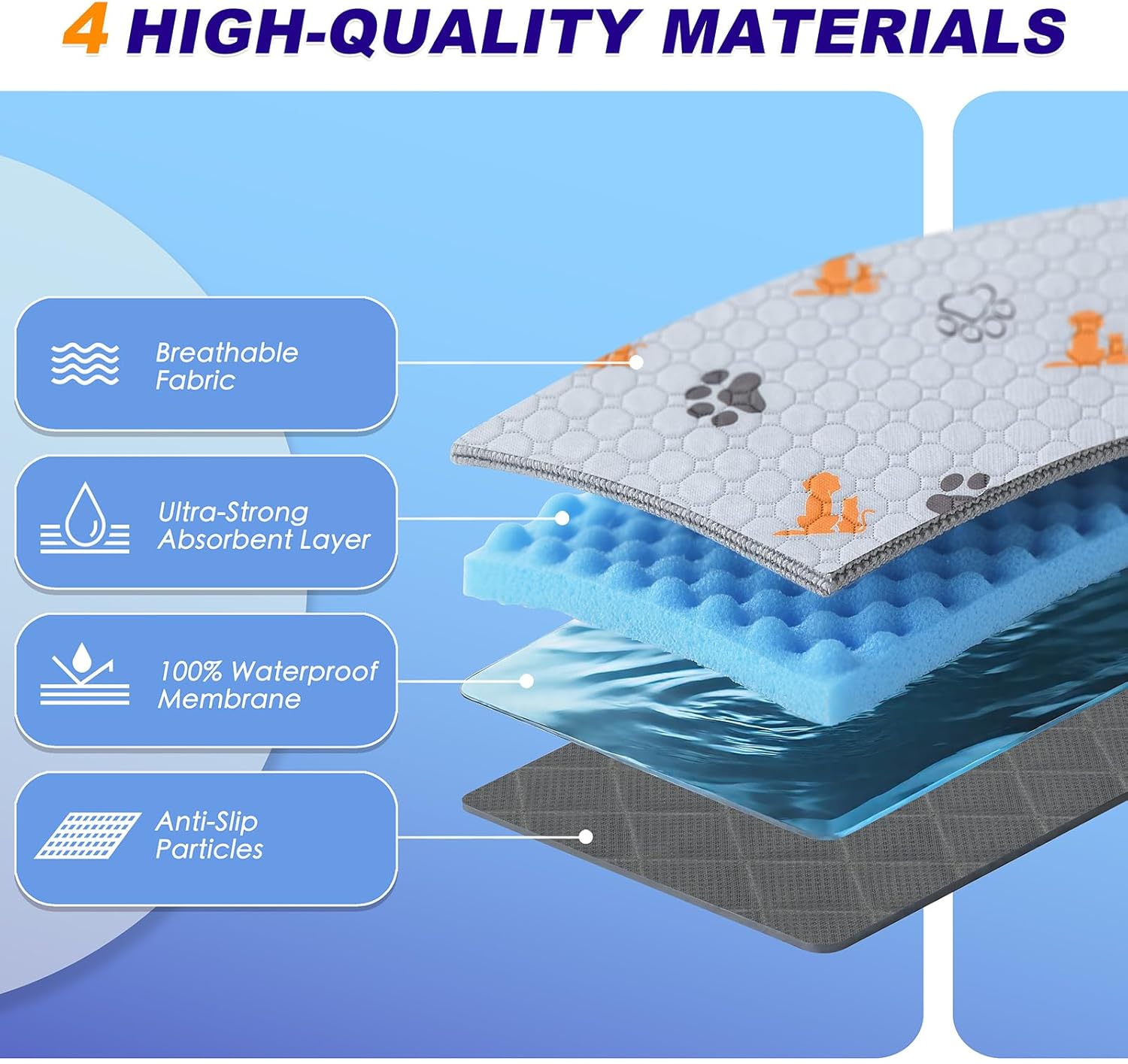 • 【Anti-Slip Bottom Design】The Anti-slip silicone design of the dog mat bottom layer allows the waterproof dog mat to stay on the floor or carpet, keeping your pet safe. Ideal for puppies, older dogs, and those with incontinence issues or who are being trained to use pee pads.