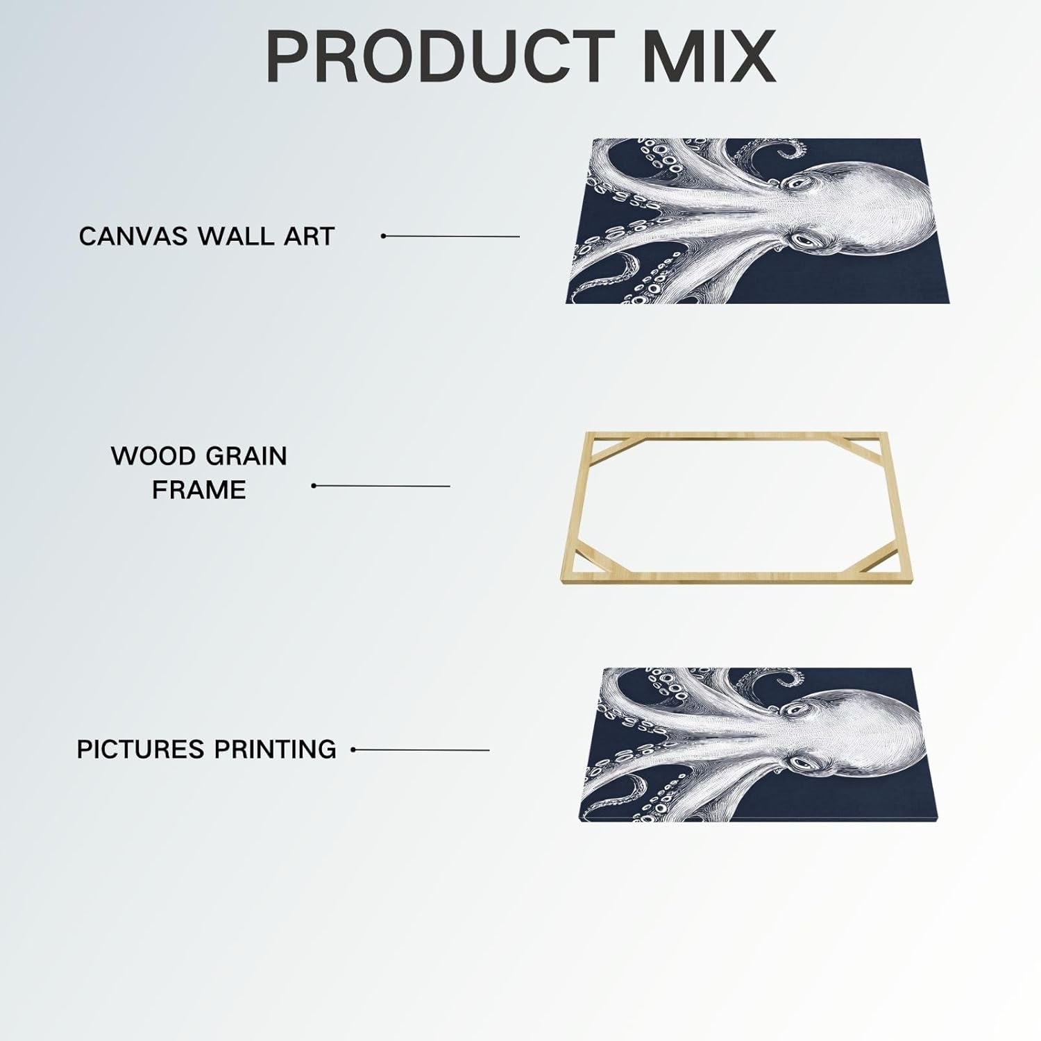 • The High-Quality Canvas Painting:The high-quality canvas fits closely with the wooden frame, Highlight the agility of the octopus canvas painting give you a special mood