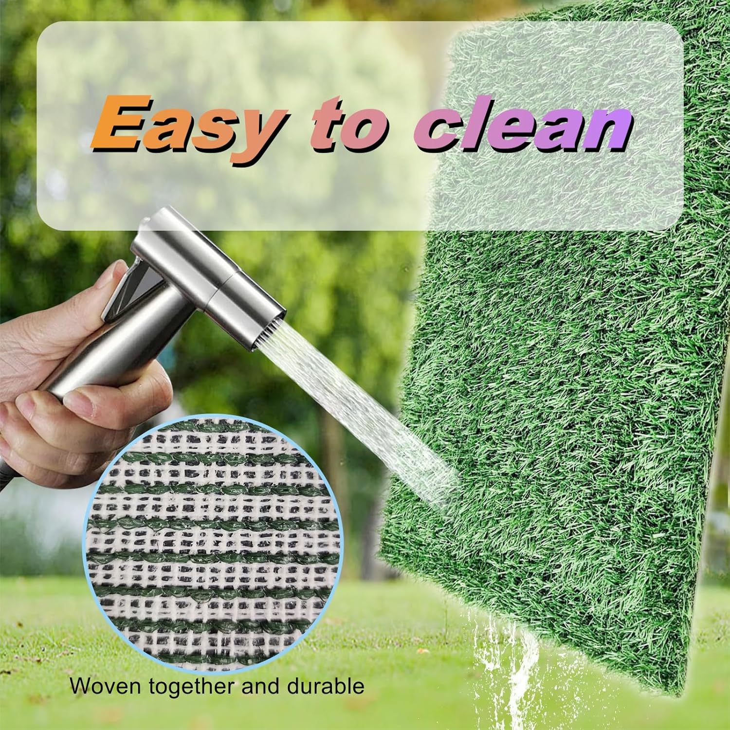 • EASY TO CLEAN AND REUSABLE:With a washable waterproof pee pad and a artificial grass pad, cleaning is quick and hassle-free. Simply rinse the grass, pad, and tray for a fresh and odor-free experience. This makes it a reliable choice for indoor dog potty trays and porch potties