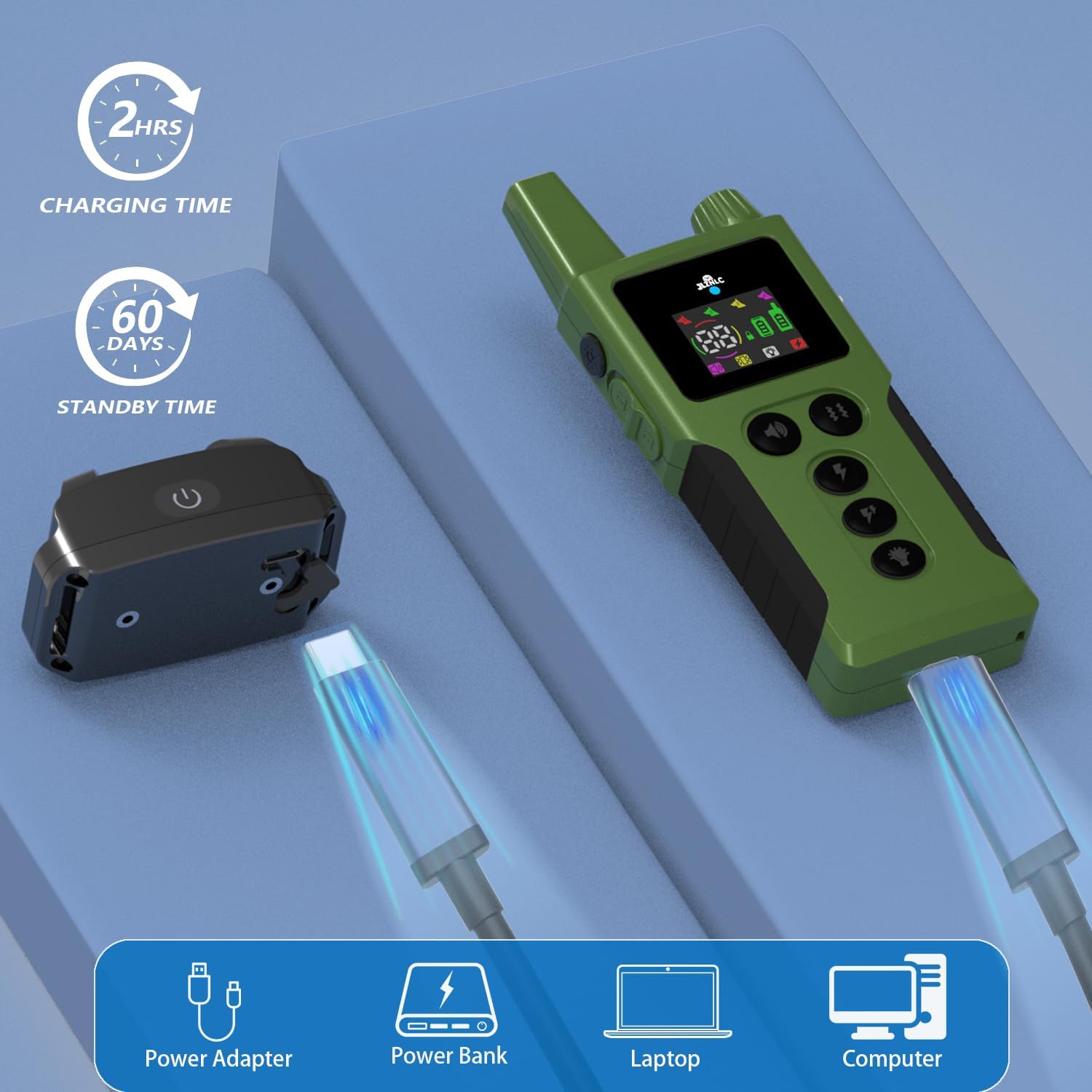 - 【Incredible Battery Life & Quick Charging】 The collar features USB charging with a 2-in-1 fast charging design that takes just 2 hours to fully charge. It offers long-lasting battery life, with up to 30 days of standby time for the collar and 60 days for the remote, reducing the need for frequent recharges