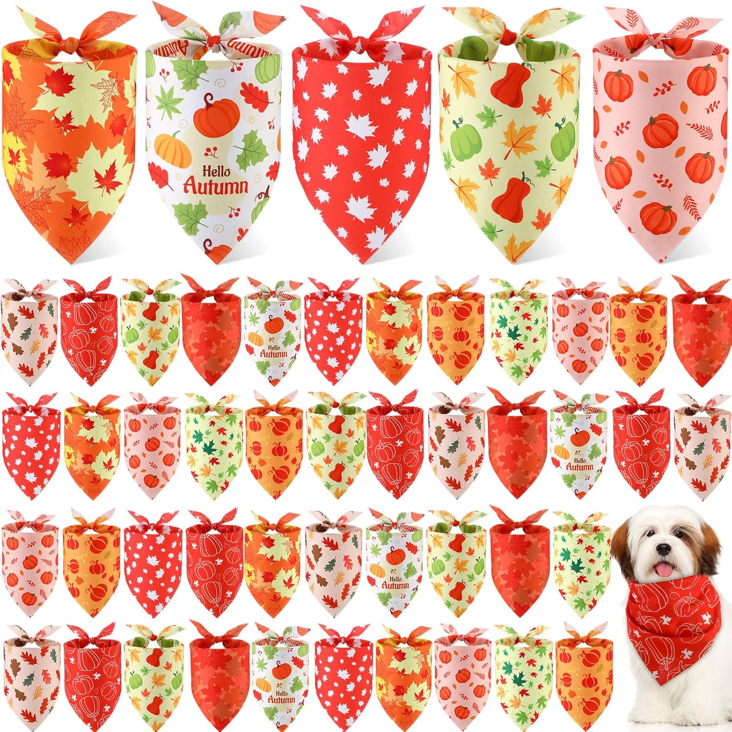 • Sufficient Quantity: there are 50 pieces Fall Maple Leaf bandanas for dogs in 10 different designs, 5 pieces each style, enough quantity can meet your pet's autumn decoration needs and replacement or share with your family and friends who have lovely pets