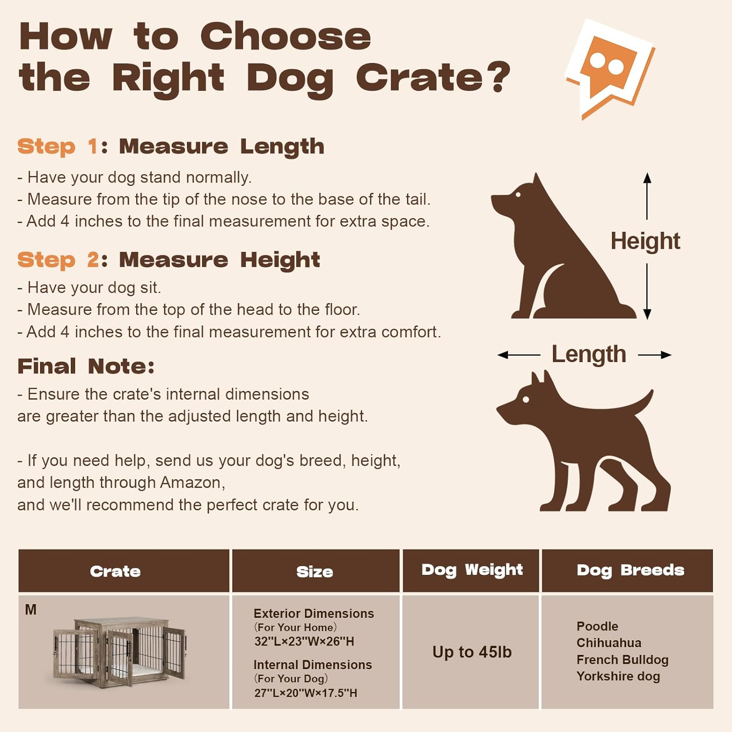 • Multi-Functional Dog Cage Furniture – Use as a decorative dog crate in your living room, entryway, or bedroom. The spacious top (150 lb capacity) holds plants, lamps, or photo frames, making it a versatile furniture-style dog crate.