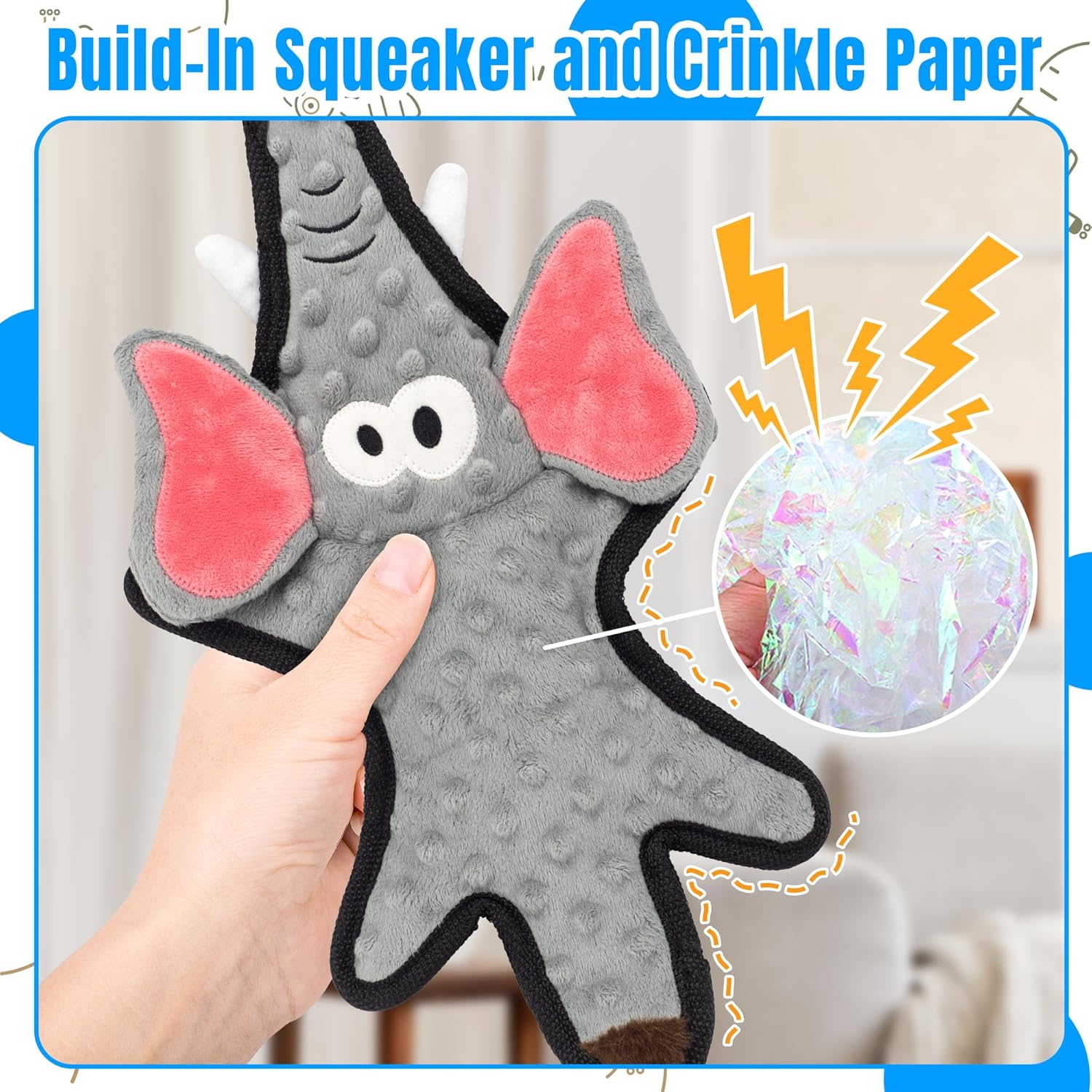 No Stuffing Dog Squeaky Toys, Glowing Eyes Crinkle Plush Puppy Toys for Teething Chewing, 5pcs Flat Tough Dog Toys Set for Large Medium Small Dogs to Keep Them Busy