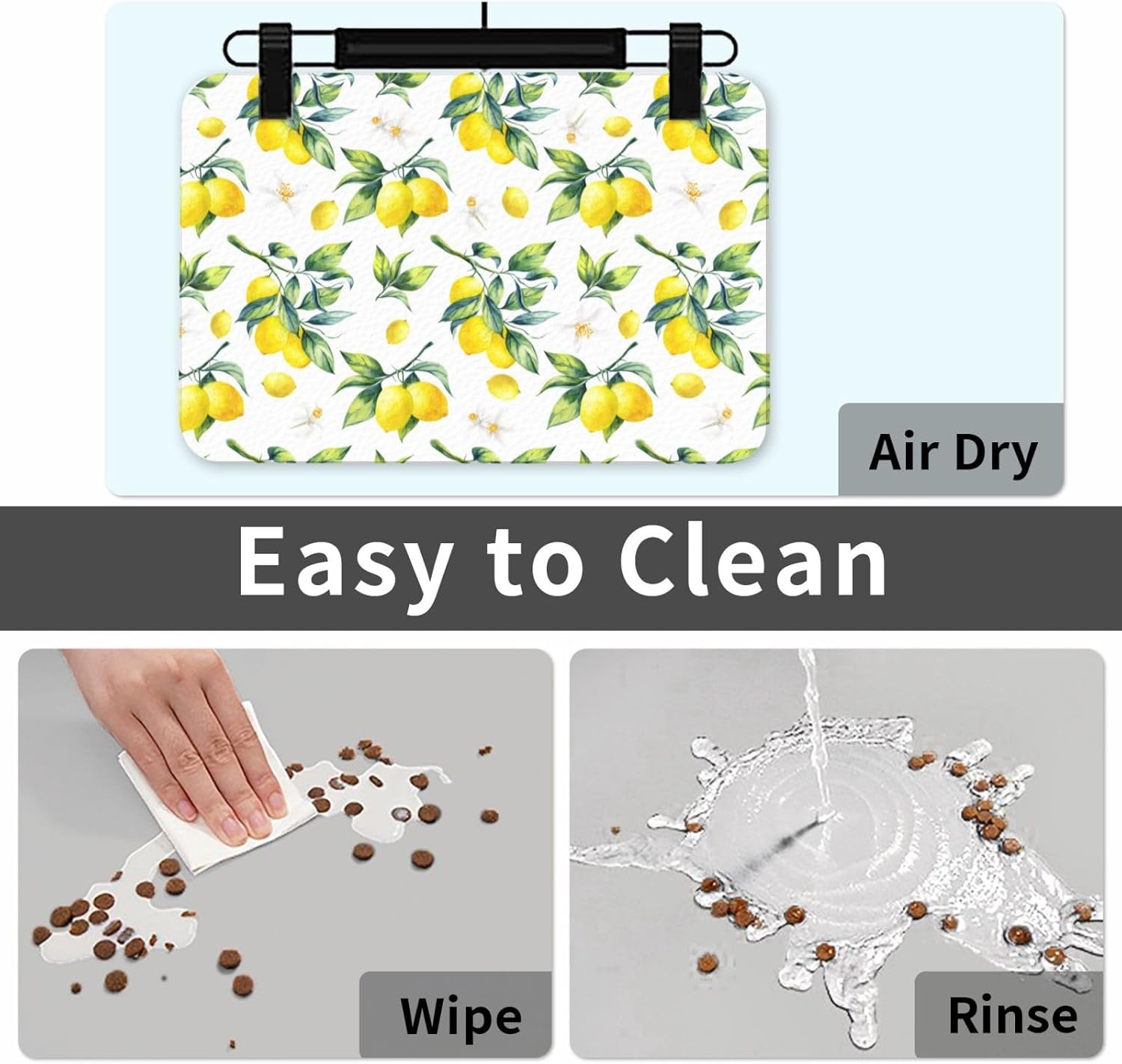 Tropical Lemon Leaves Dog Food Mat Absorbent Bowl Mats No Stains Quick Dry Waterproof Pet Cat Placemats for Food and Water, 30x45cm