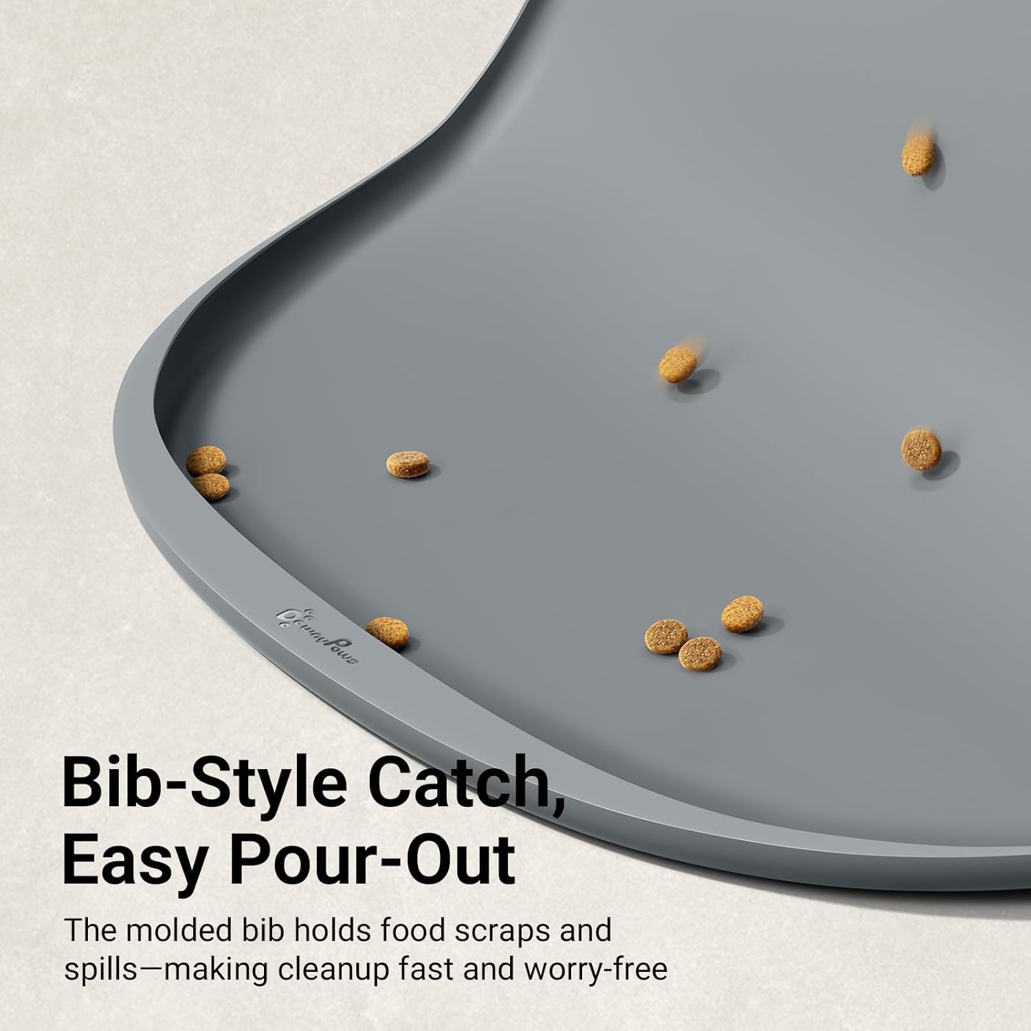 • Unique FurBib Design: Our thoughtful FurBib design helps guide water and crumbs back onto the pet feeding mat when lifted. Less scatter, less cleanup. The small pocket (10mm deep) suits most cat food sizes, while the medium pocket (16mm deep) easily contains common dog kibble
