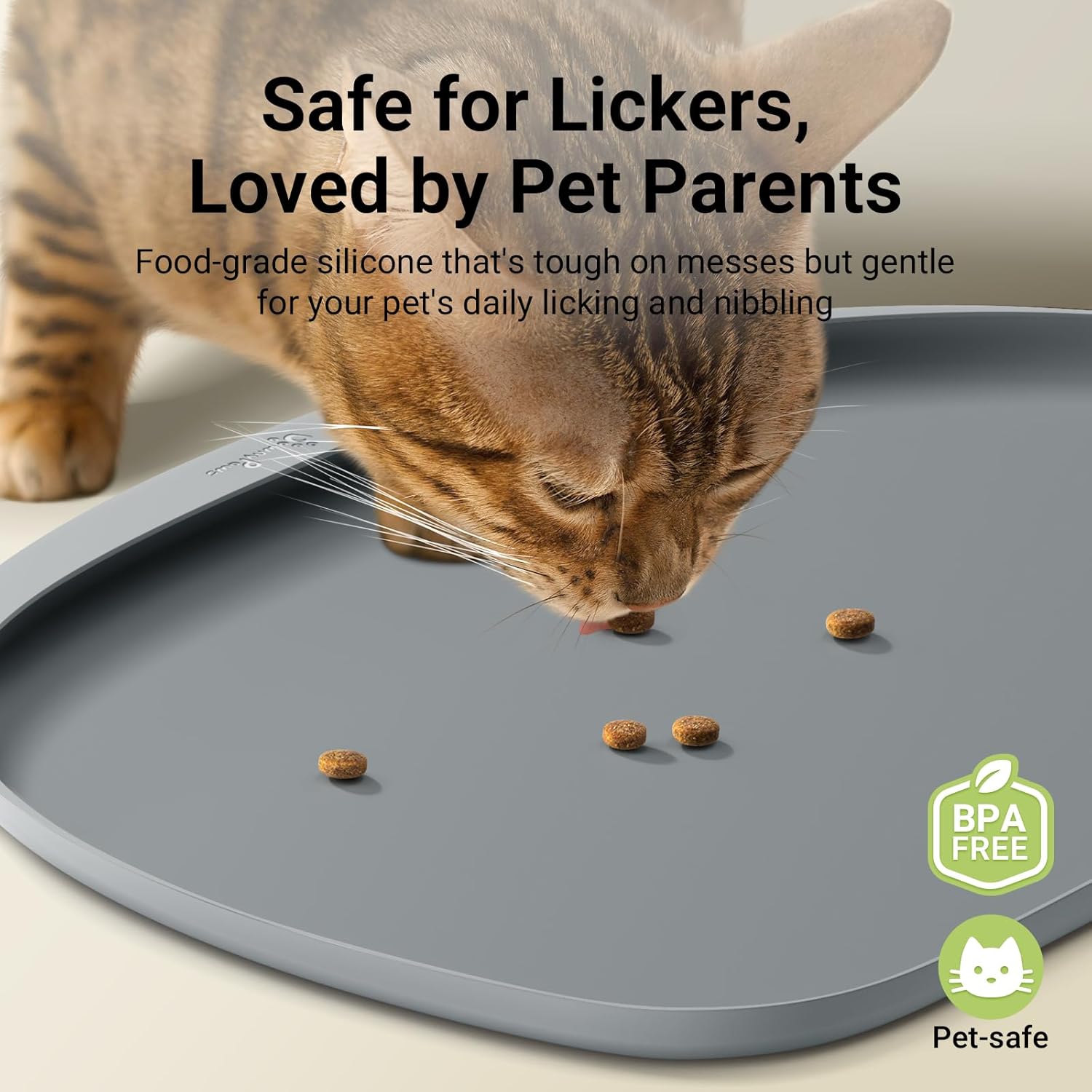 • Meals Stay Put: This mat for dog food and water bowls is made from non-slip silicone, keeping your pet's mealtime in place. The cat feeding mat is completely waterproof, keeping every drop in place, so your floors stay clean and dry