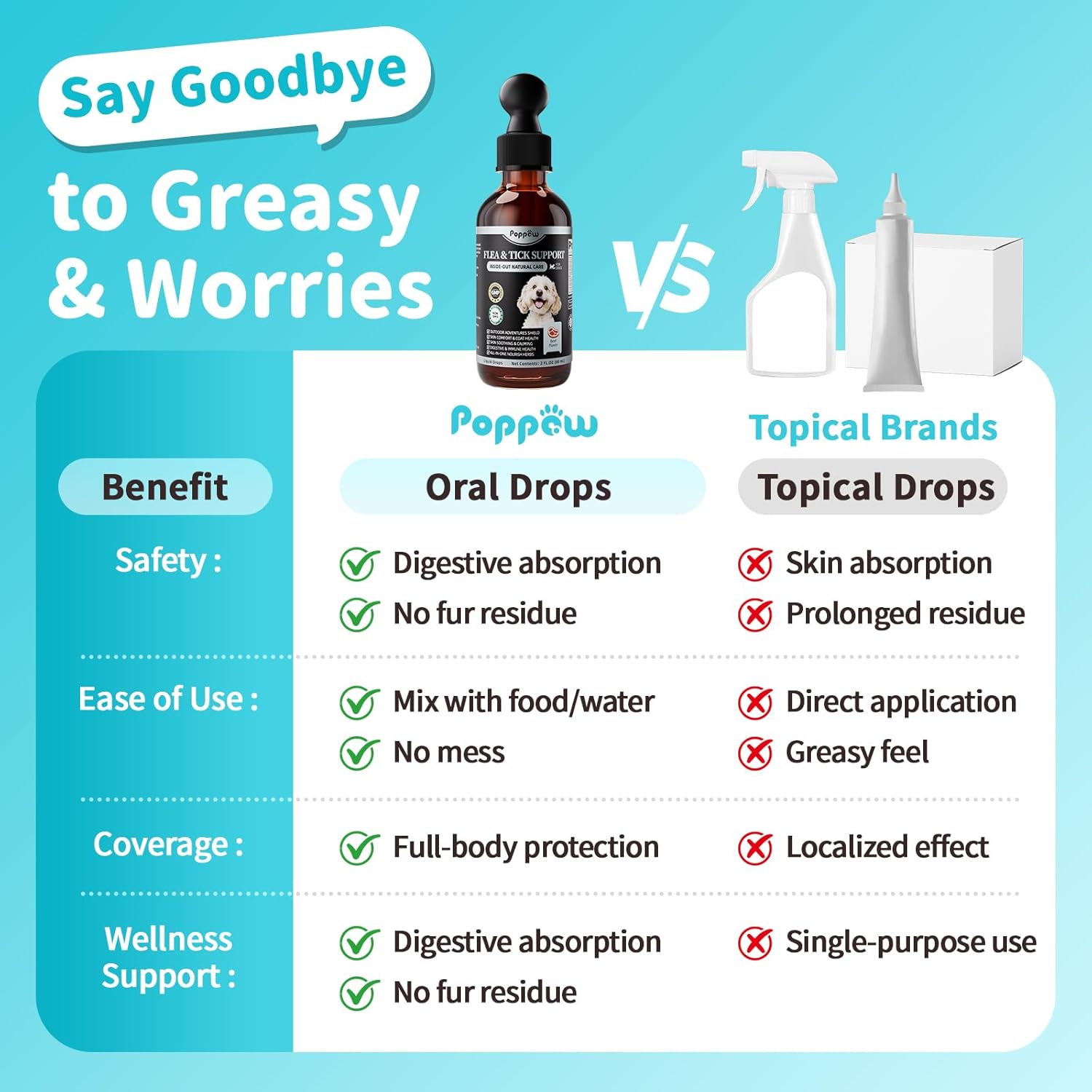 - Dog Herbal Skin & Coat & Outdoor Support: A natural flea and tick prevention support for dogs, helping nourish skin and coat from within. POPPAW’s plant-based oral flea and tick drops provide gentle daily care, supporting comfort, balance, and wellness for all breeds.