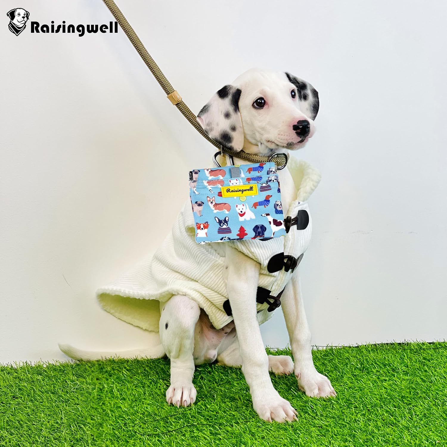 • Durable Material: Raisingwell's dog treat training pouch is crafted from durable, washable, non-toxic vegan fabric, made of pure cotton. In particular, the waterproof lining addresses the issue of difficult cleaning inside the training pouch.
