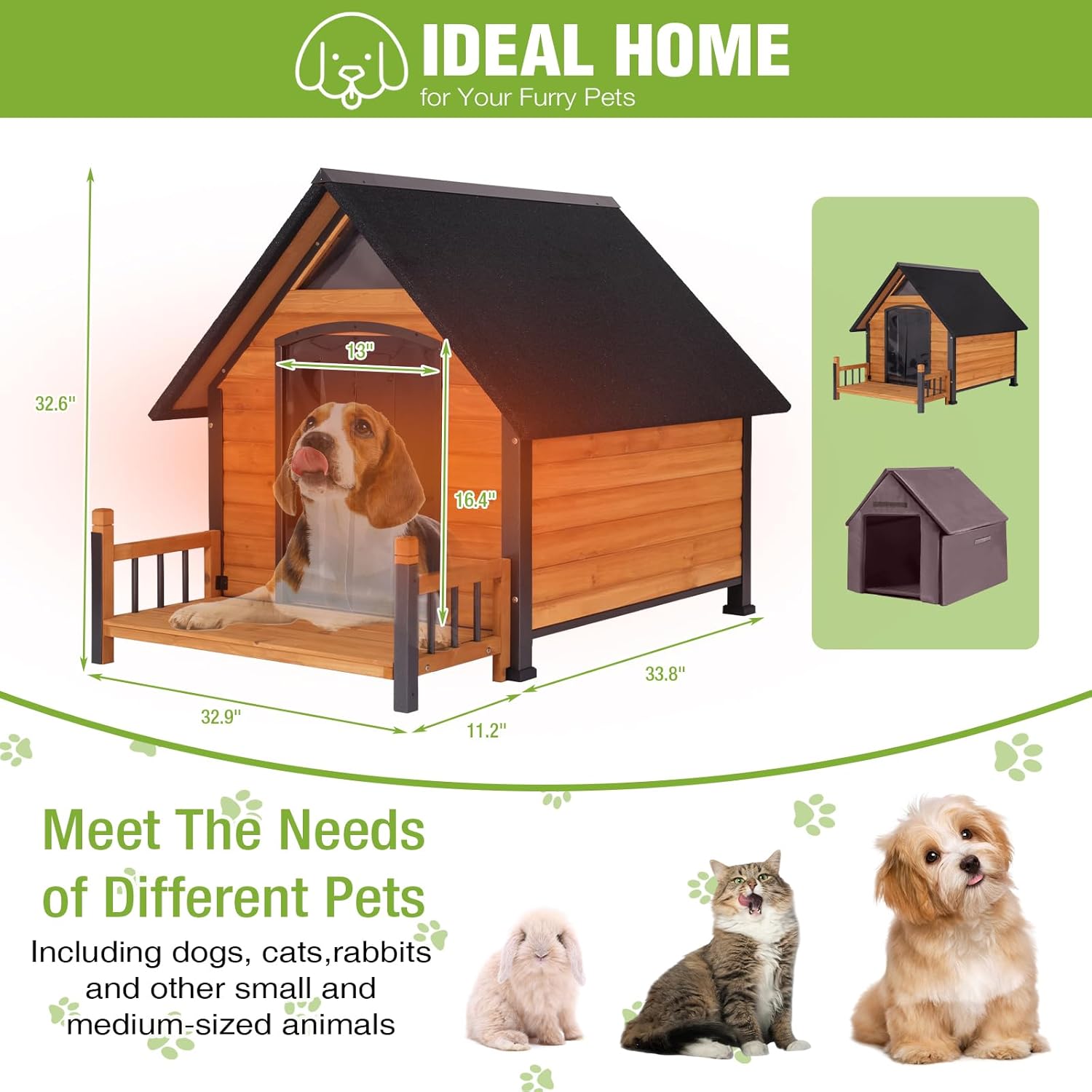 • SPACIOUS SPACE FOR MULTI BREEDS:Measuring 45in(L)×32.9in(W)×32.6in(H) with a roomy entrance of 16.4in(H)×14in(W), our Dog House is perfectly sized for small and medium dogs. Suitable for both indoor and outdoor use, it's the perfect Puppy Shelter for any family pet