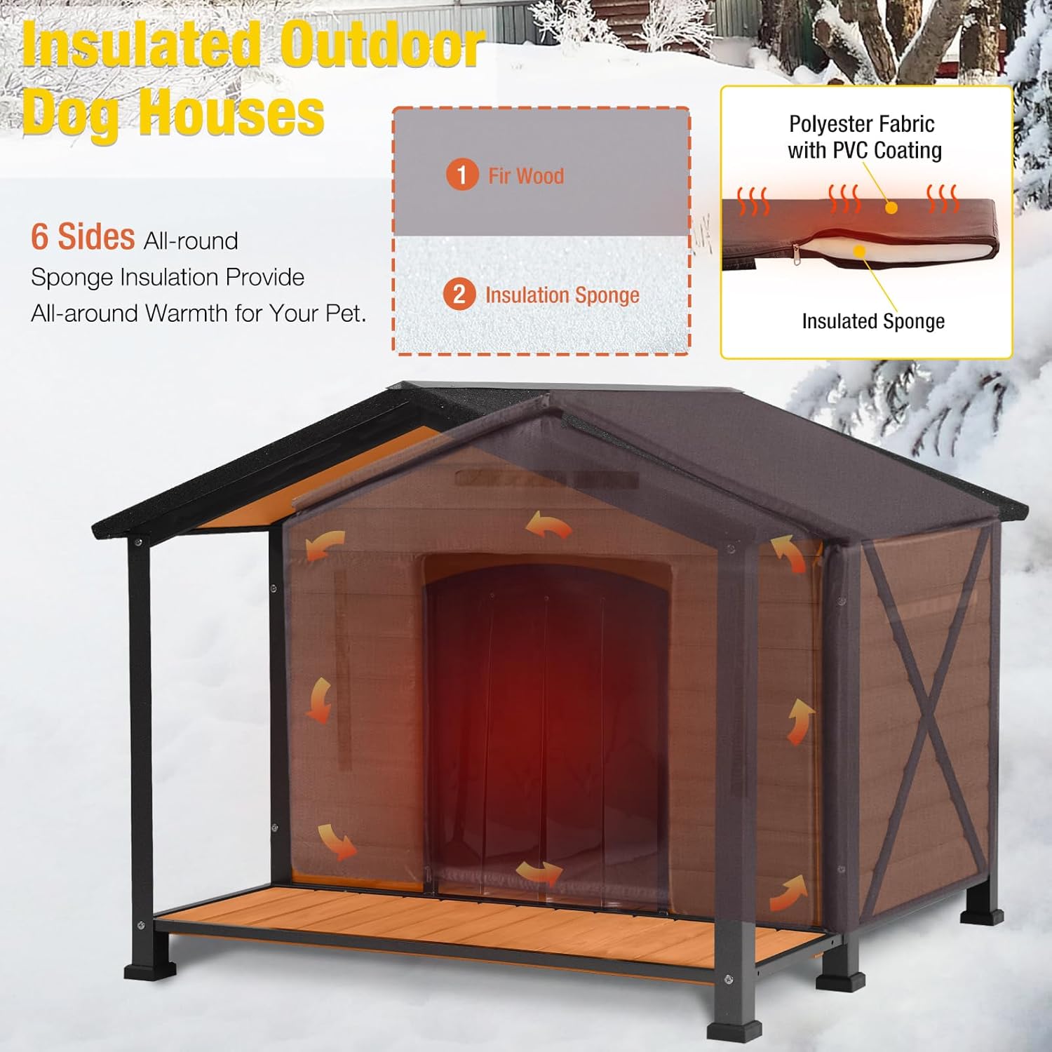 • Sturdy Wood And Metal Structure: Large dog house reinforced with a metal frame and thick solid wood panels for enhanced durability and long-term outdoor use