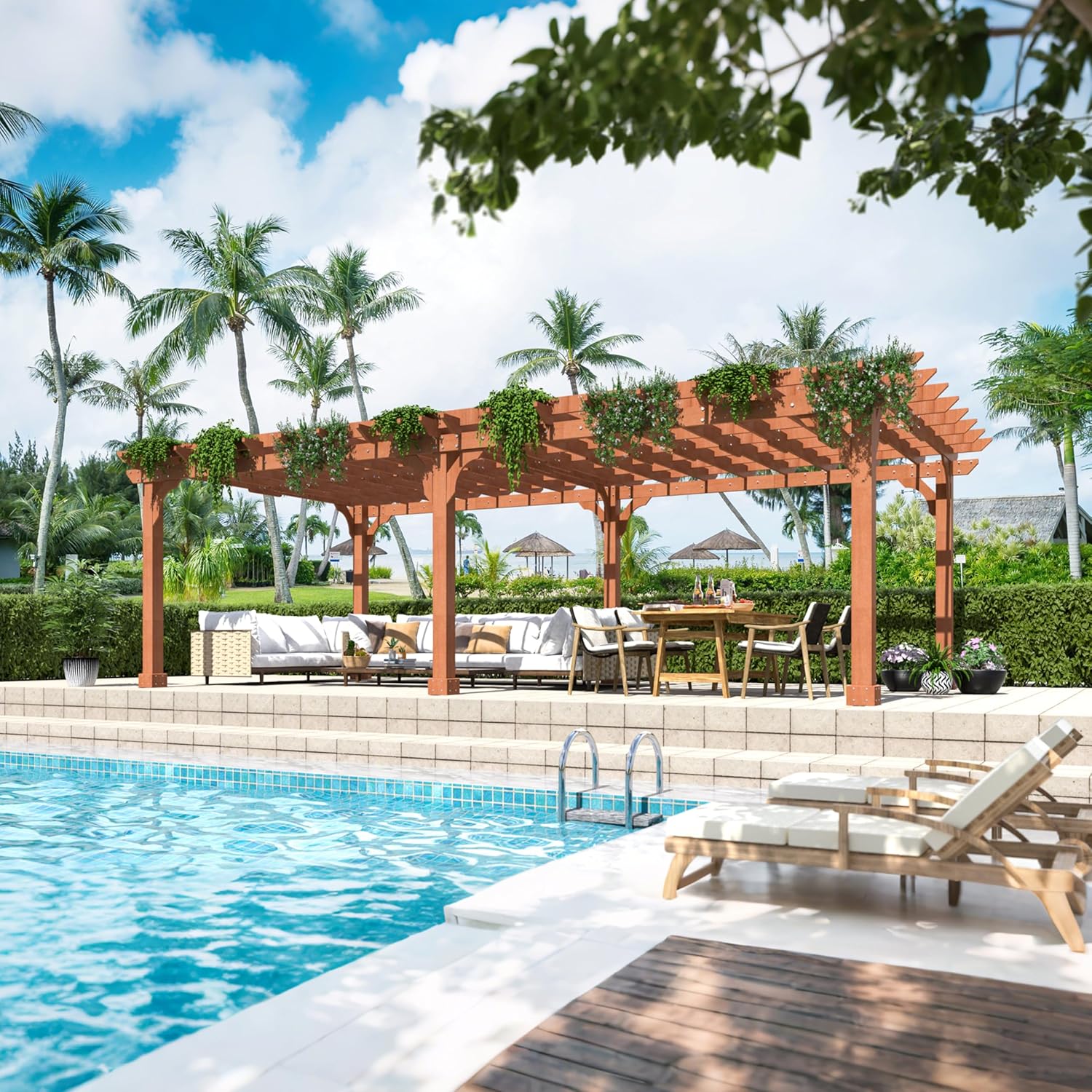 MUPATER 12x24 FT Wooden Pergola, All Cedar Wood Pergola Kit with Stakes, Quality Supported Structure, All-Season Durability, Snow and Wind Supported, Outdoor Shade for Backyard, Deck, Lawn, Patio