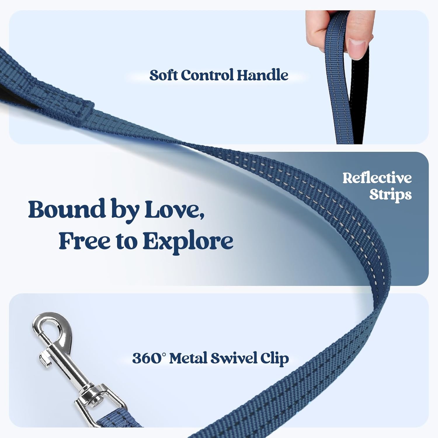 • Dog Harness with Leash Set: The color-matching harness and leash with reflective bands make it fashion and visible for pet outing. The leash is 5.12ft in length, with an anti-tangling clip and a palm-friendly handle
