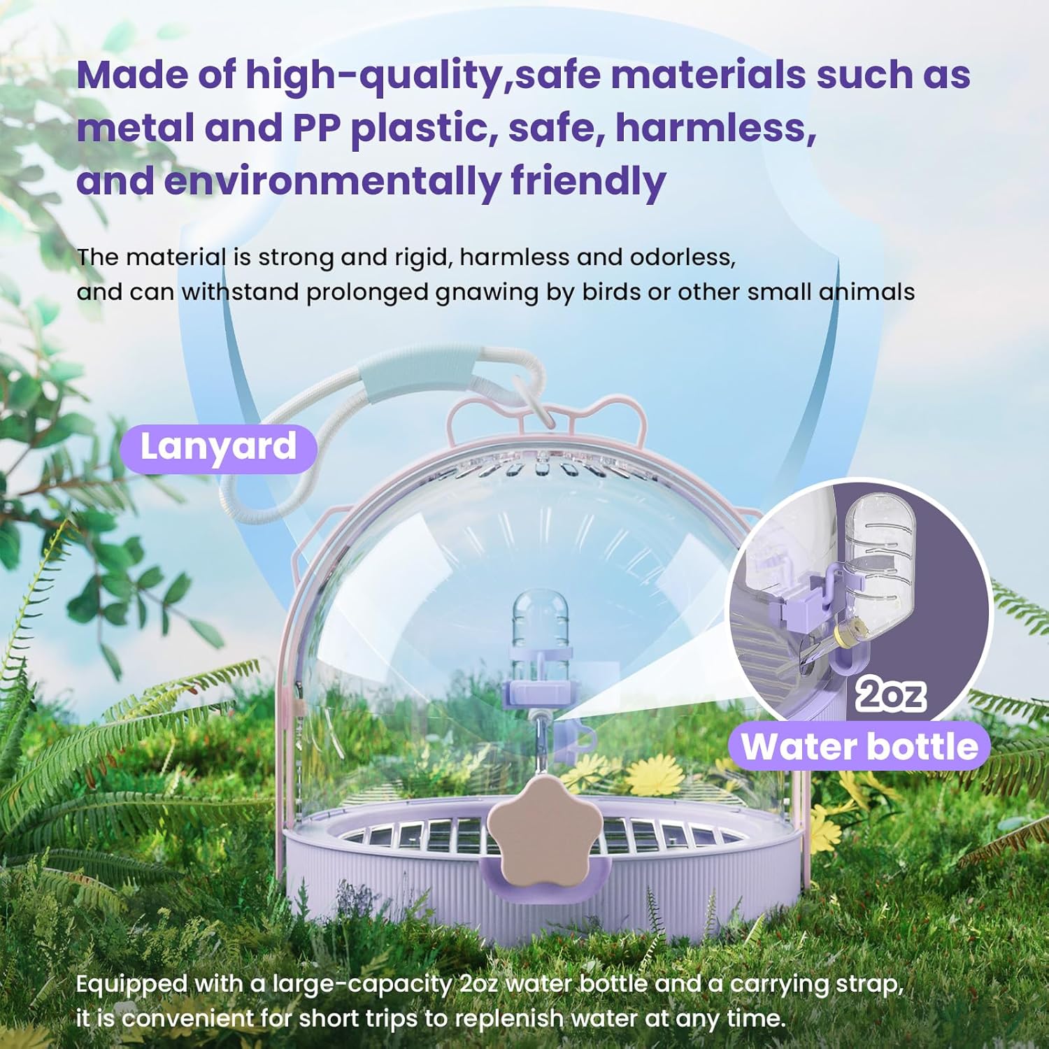 • 【Multiple Accessories For Different Scenes】Our small animal cage is equipped with a 60ml water bottle, to meet the short distance travel water supplement, so that your pet travel stress-free, for small animals to bring a first-class comfortable experience.