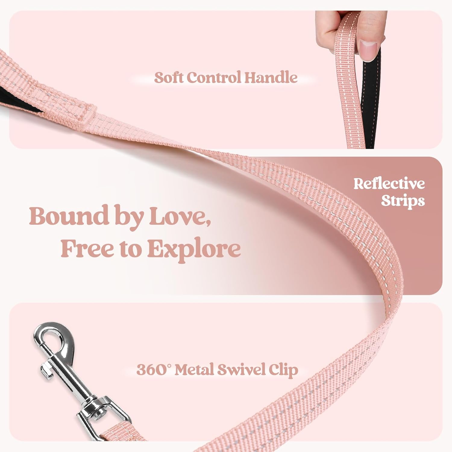 • Dog Harness with Leash Set:The color-matching harness and leash with reflective bands make it fashion and visible for pet outing. The leash is 5.15ft in length, with an anti-tangling clip and a palm-friendly handle