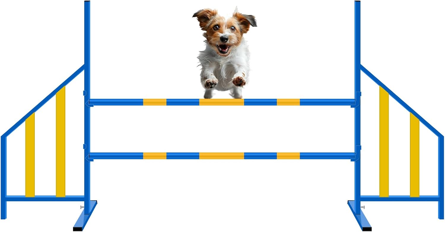 • Adjustable Height: the height of our training equipment is 100Cm/39.37in, the width of each bar is 40cm/15.75in, the length of the jump bar is 120cm/47.24in, and the height range of the two jump bars can be adjusted from 0-65cm/3.94-25.6in, which allows your pet to start training from low to high and gradually improve self-confidence
