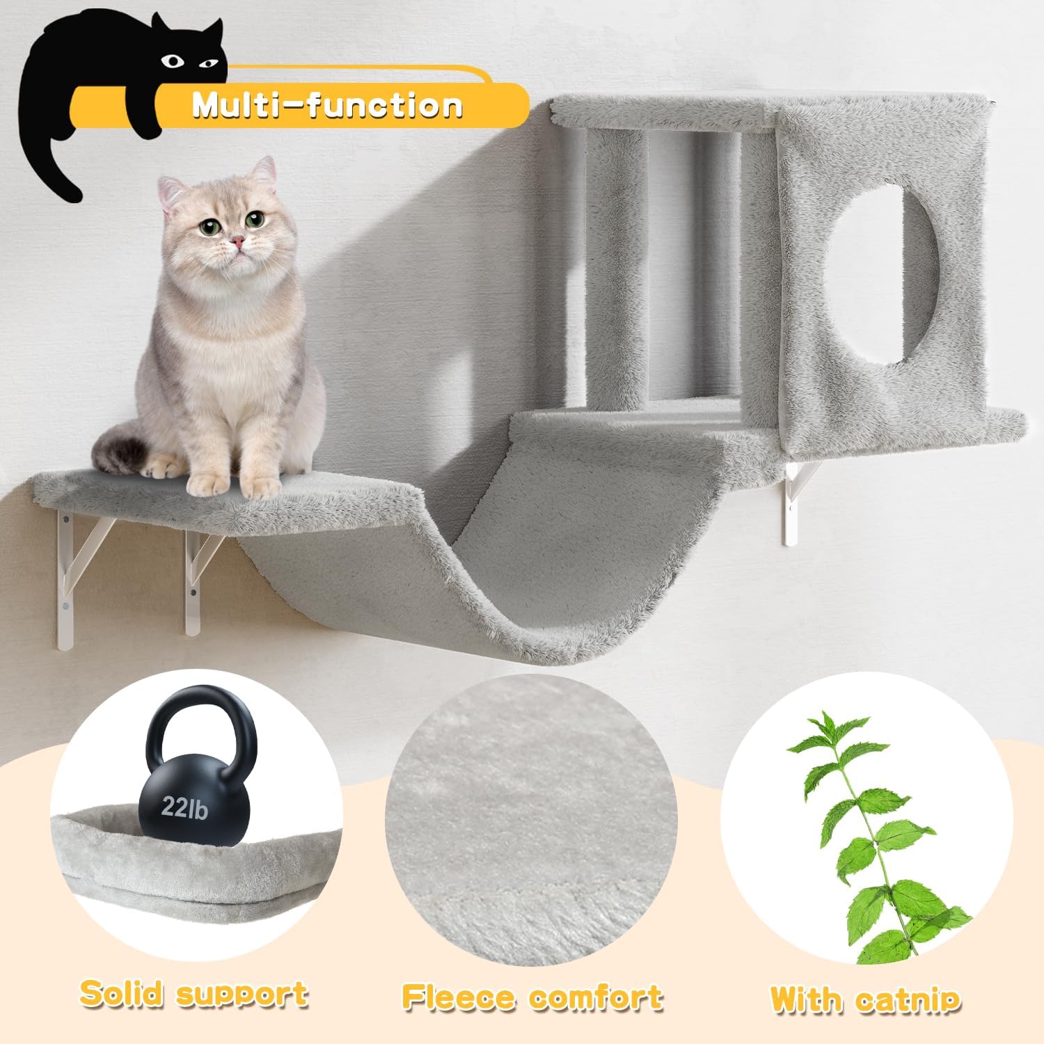 • EASY TO INSTALL - This wall mounted cat furniture comes with mounting accessories and installation instructions, allowing you to adjust the position and angle as desired. It simplifies the complexity of installation and increases stability, so you won't find it difficult to install, even if it's your first time.
