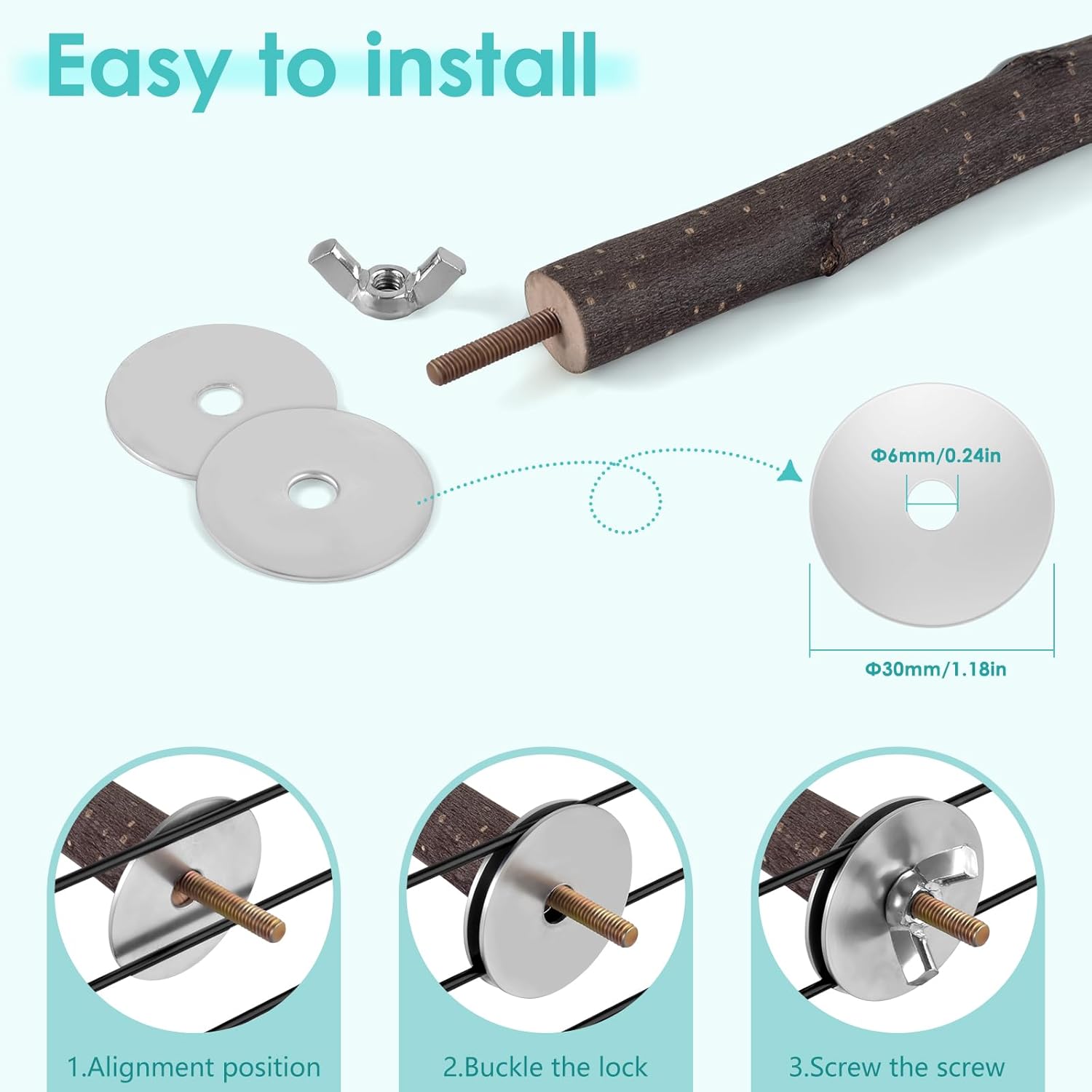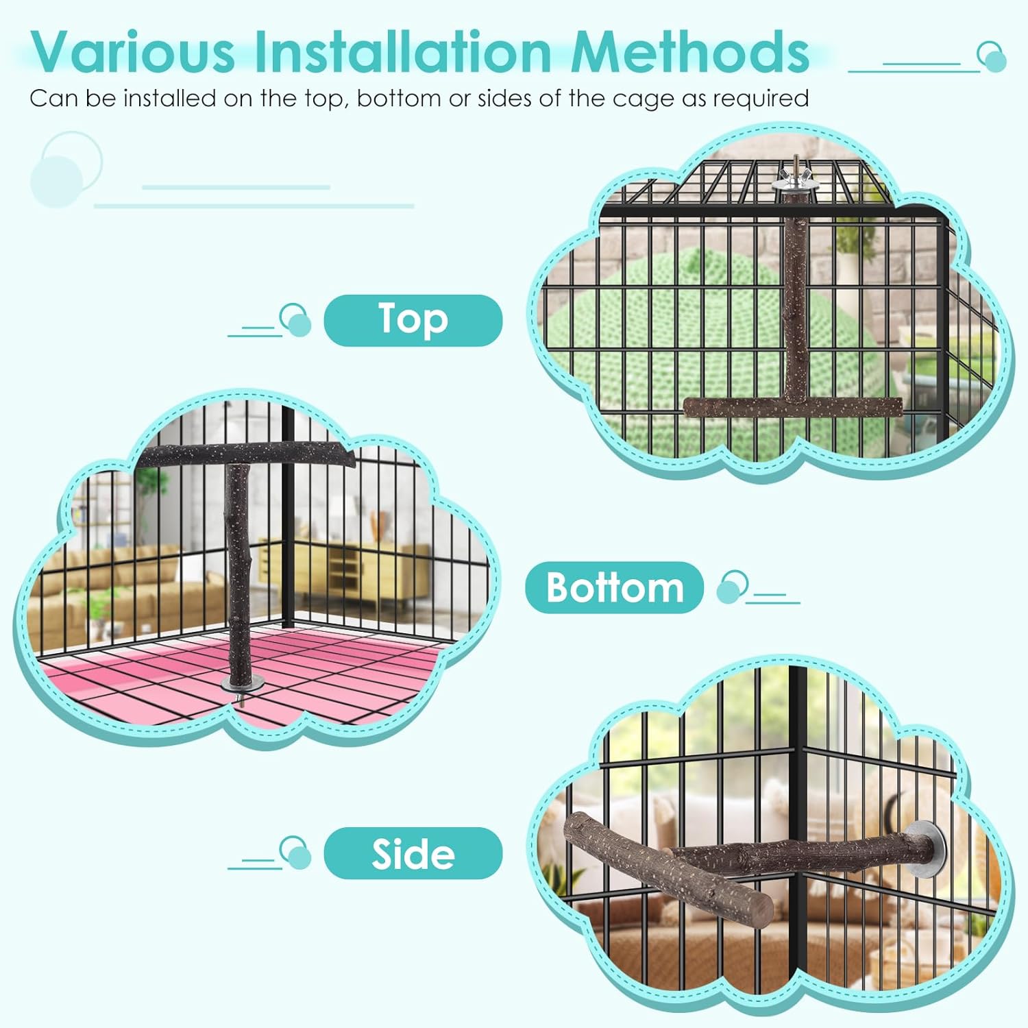 • Easy to Install: Each parrot cage perch stand comes with metal wing nuts and built-in bolts that securely fasten to the inside and outside of the bird cage, eliminating the need for additional mounting equipment. This provides additional living and landing space for parrots and creates a natural habitat