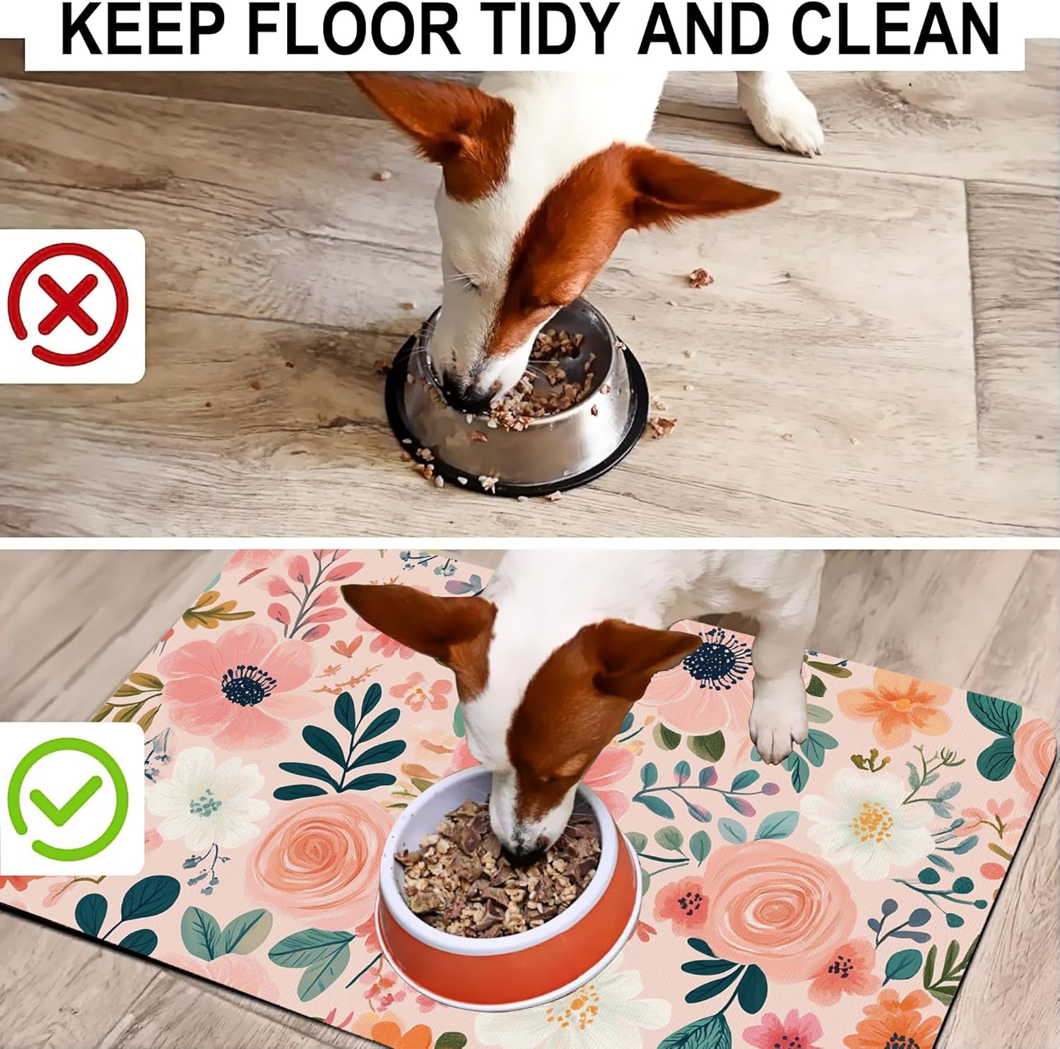 Boho Floral Pet Feeding Mat for Floors-Absorbent Dog Bowl Mat for Food and Water, Quick Dry Pet Cat Feeding Mats with Non Slip Bottom, Mess-Free Dog Accessories 16"x24"