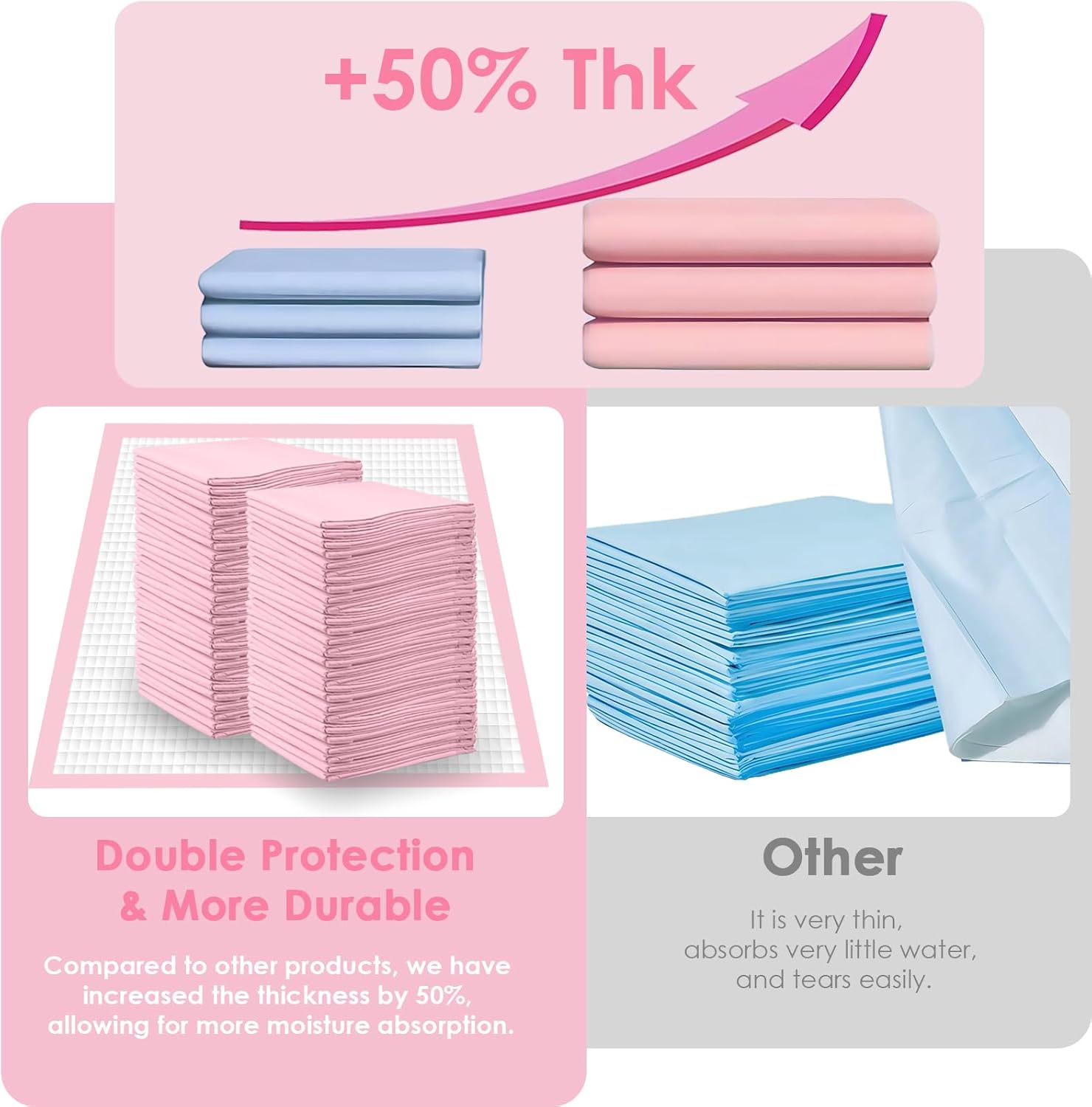 Pink Puppy Pee Pads, 18"x 24" 50 Count Disposable Puppy Pee Pad for Pet Toilet Training, Super Absorbent & Thick, Leak-Proof, Quick-Dry, Pet Potty Pads for Puppies, Dogs, Cats, Rabbits