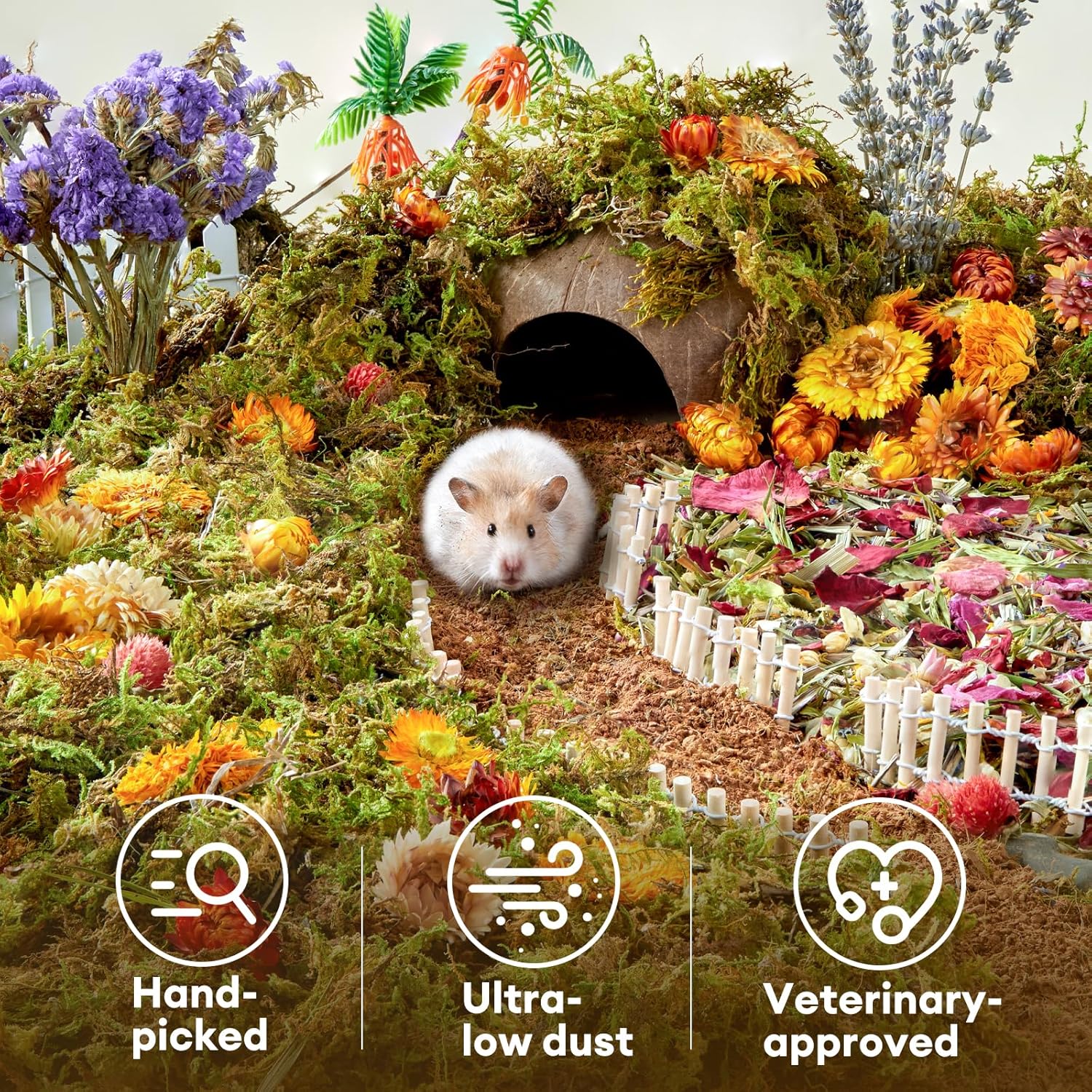 • Premium All-Natural Hand-Picked hamster moss : Naturally sourced, dye-free, low dust & low impurities. UV sterilized for safety. Meets pet safety standards.