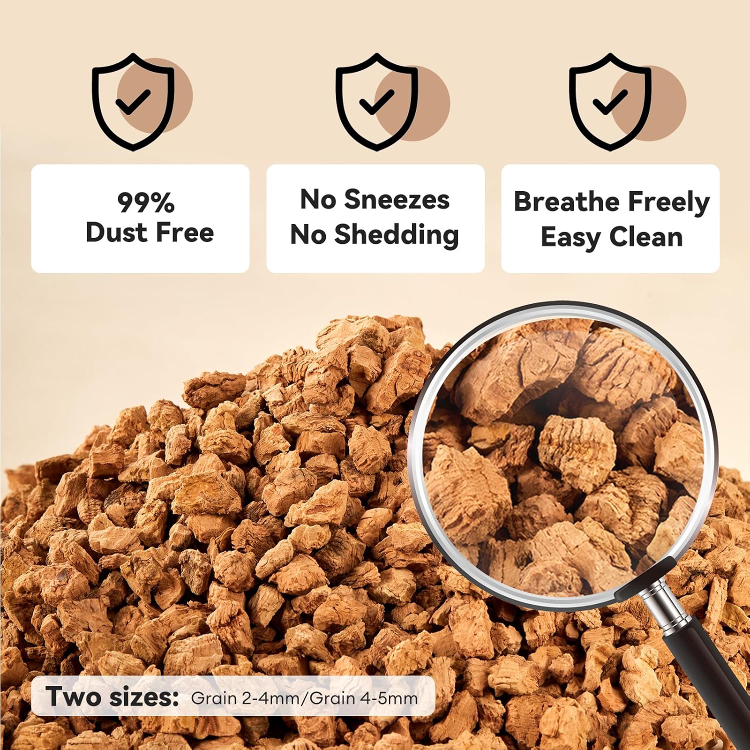 • 100% Natural 5L Hamster Substrate: These hamster textures are crafted from 100% natural cork log(Grain 2-4mm), offering a chemical-free, eco-friendly solution for your pets. It's a great natural theme enrichment to add to a hamster enclosure.