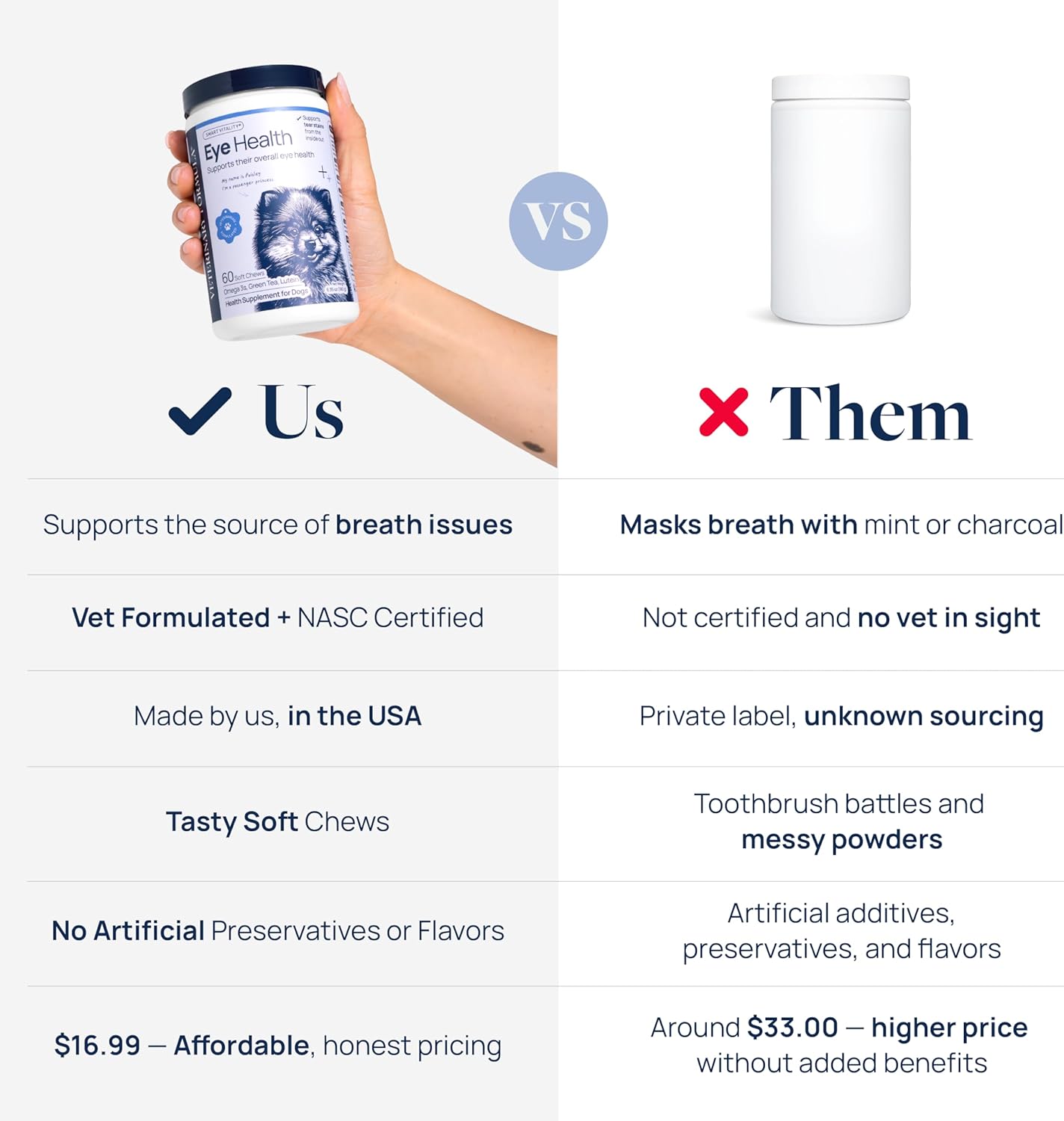 • VET-FORMULATED & TRUSTED QUALITY – Made in the USA in a cGMP-compliant facility with the NASC Quality Seal. These soft chews are vet-formulated and made without artificial flavors or preservatives, so daily eye care is simple and dog-approved.