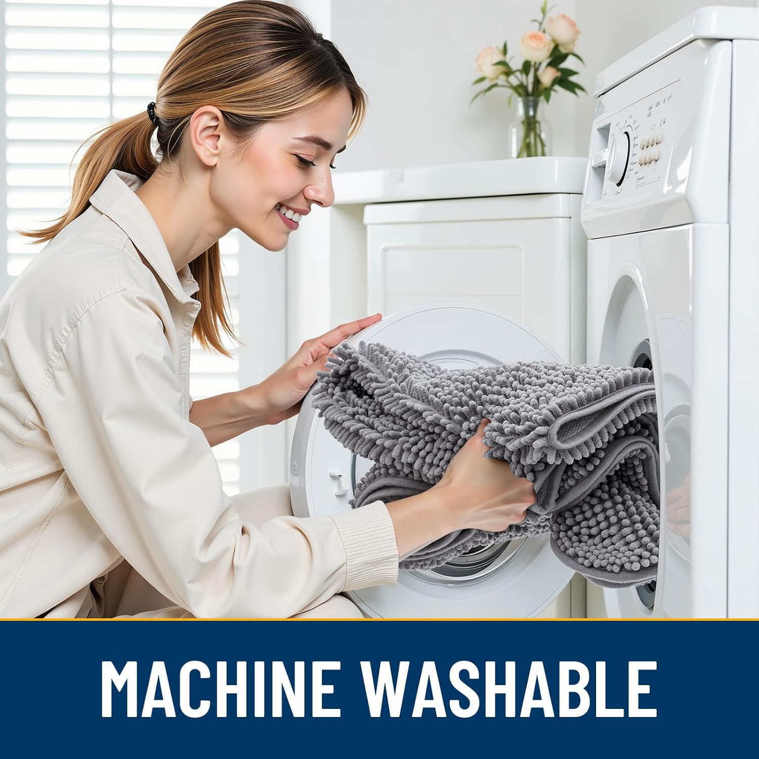 Smiry Dog Door Mat for Muddy Paws 44x32, Absorbs Moisture and Dirt Doormat, Non-Slip Washable Quick Dry Chenille Front Door Mat Indoor Entrance, Entryway Carpet for Inside Floor, Grey
