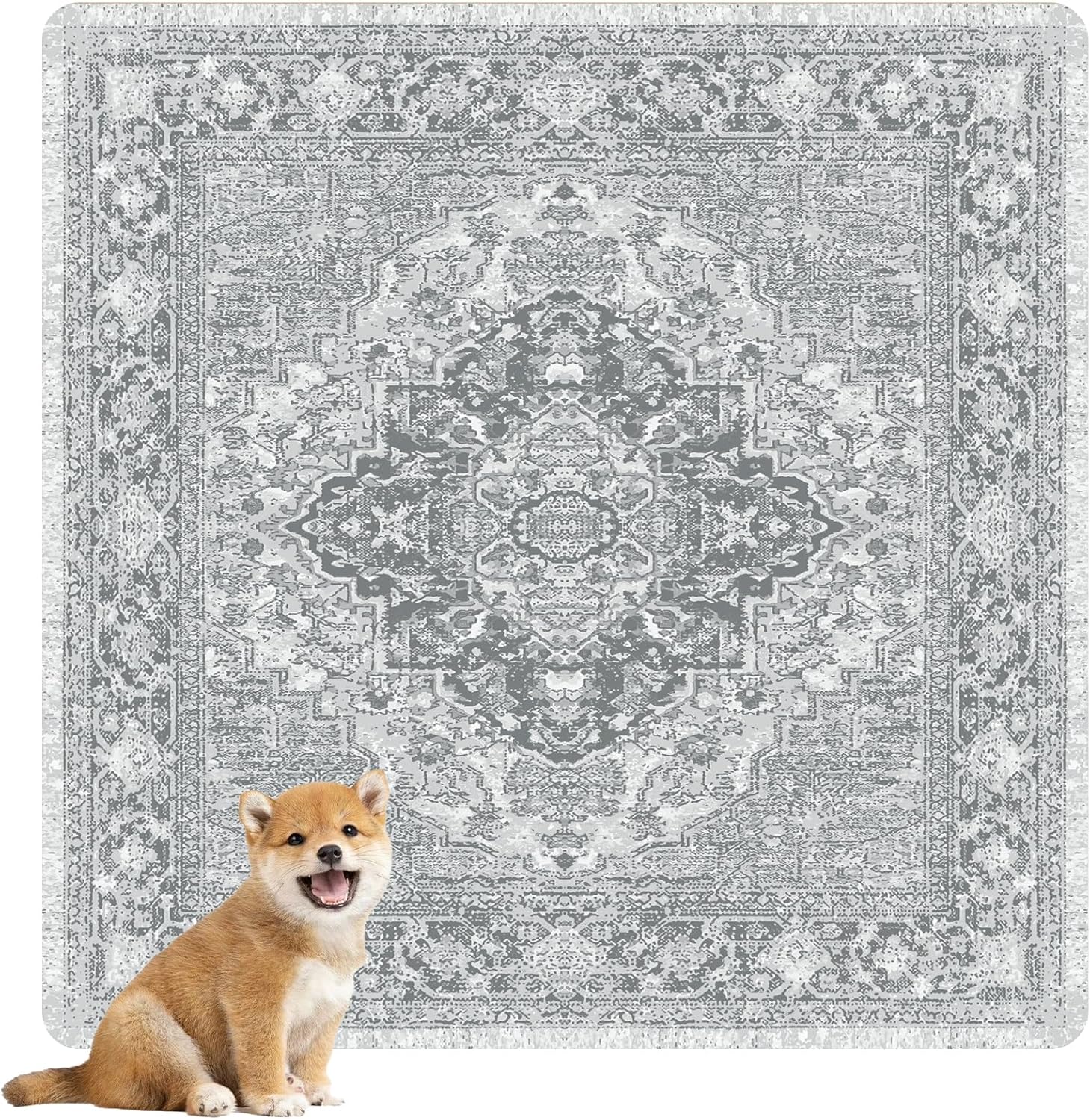 nunubaby Washable Pee Pads for Dogs, Stylish, Non-Slip and Leak-Proof Pee Pads. Reusable Potty Pads for Dogs for Crates and Floors.(Grey/Geo, 48" x48")