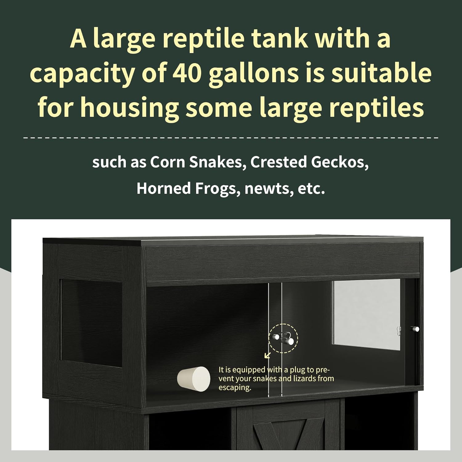40 Gallon Reptile Terrarium Tank with Storage Cabinet, Reptile Tank with Stand, for Leopard Geckos, Corn Snakes, Juvenile Pets, Sliding Acrylic Doors, Mesh Top, Power Outlet, Black PX03RTB