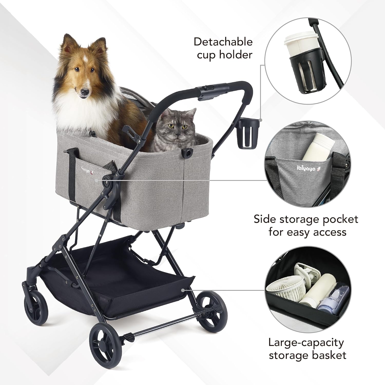 • Fumbling with Complicated Setups? With a zip-free cabin, quick snap-on carrycot, detachable cup holder, dual brakes, and space for a pet stroller pad or pet stroller fan, convenience is built right in.