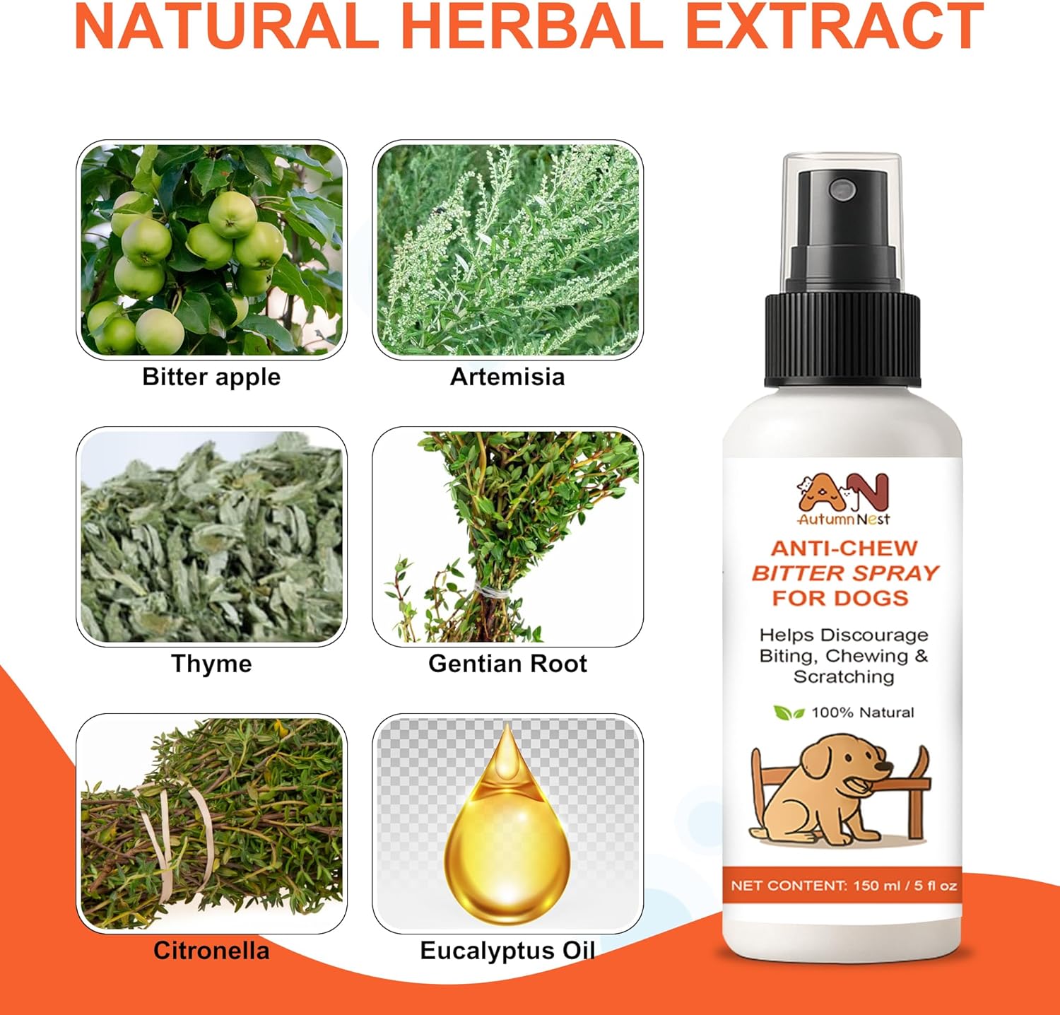• 【Stop Unwanted Chewing and Licking】 This no chew spray for dogs uses a powerful natural bitter apple formula to effectively stop pets from chewing, licking, or scratching furniture, shoes, carpets, and more. Perfect for training puppies or correcting destructive habits.