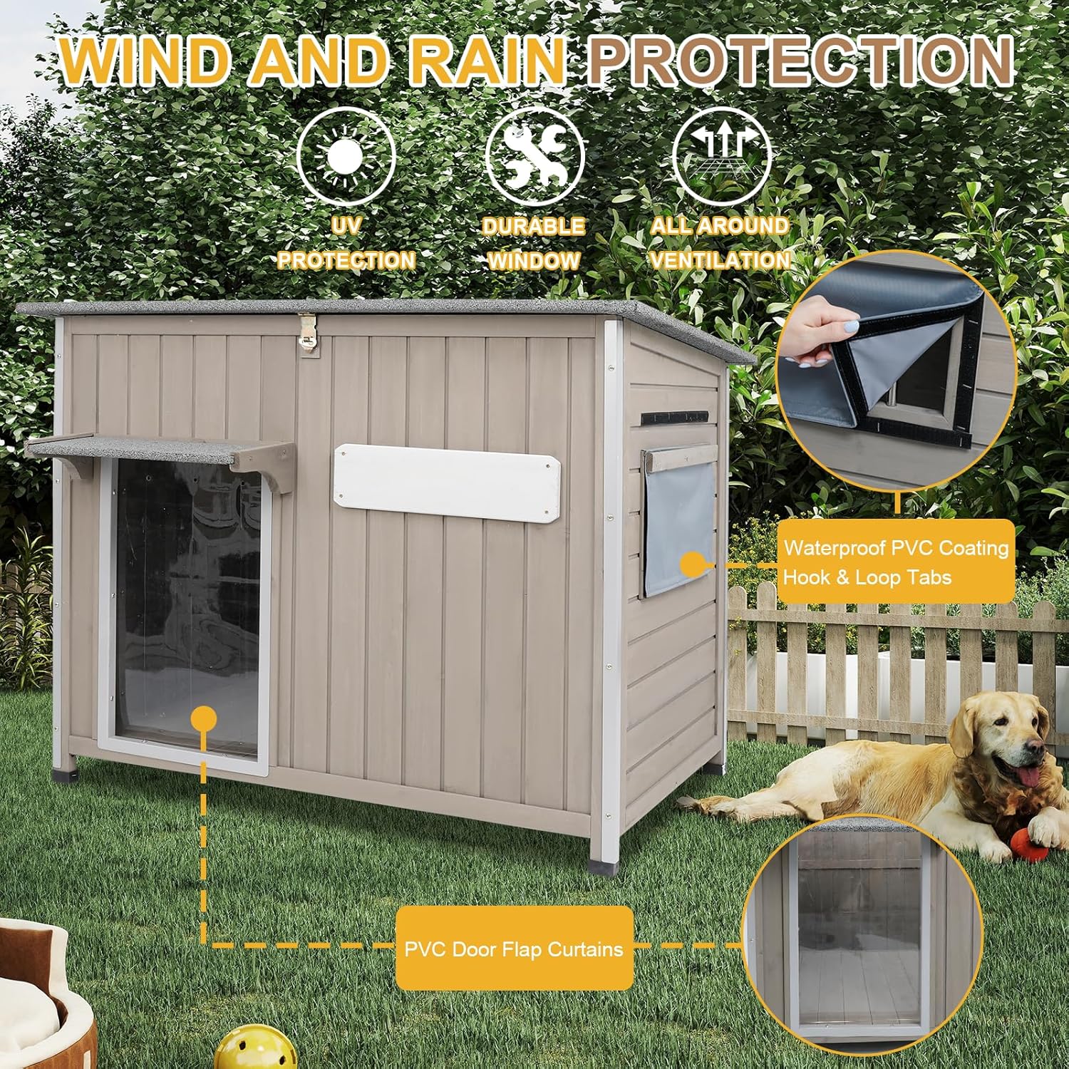 • 【Durable Design for Indoor & Outdoor Use】Crafted from solid fir wood with a weather-resistant asphalt roof, this outdoor dog house offers long-lasting protection and comfort. Built to withstand sun, rain, and wind—perfect for backyard, patio, or deck