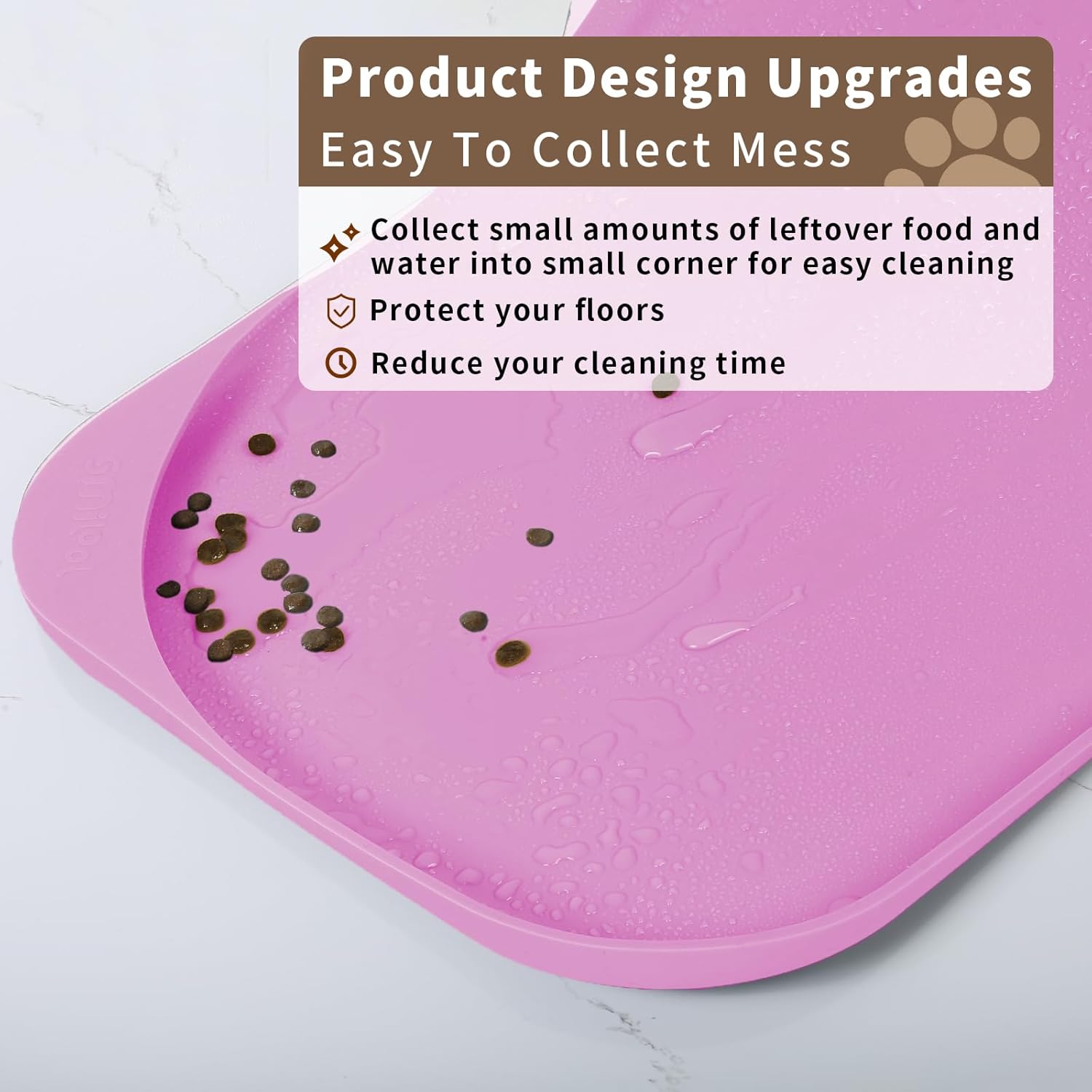 • Safe, Healthy Materials - Our non slip elevated pet food placemats for pets are made from high-quality food-grade silicone that is non-toxic and 100% free of harmful chemicals like BPA, PVC, and phthalates. It can withstand temperatures up to 464°F, making it durable yet safe - the perfect choice for your kitten, dogs, or any pets.