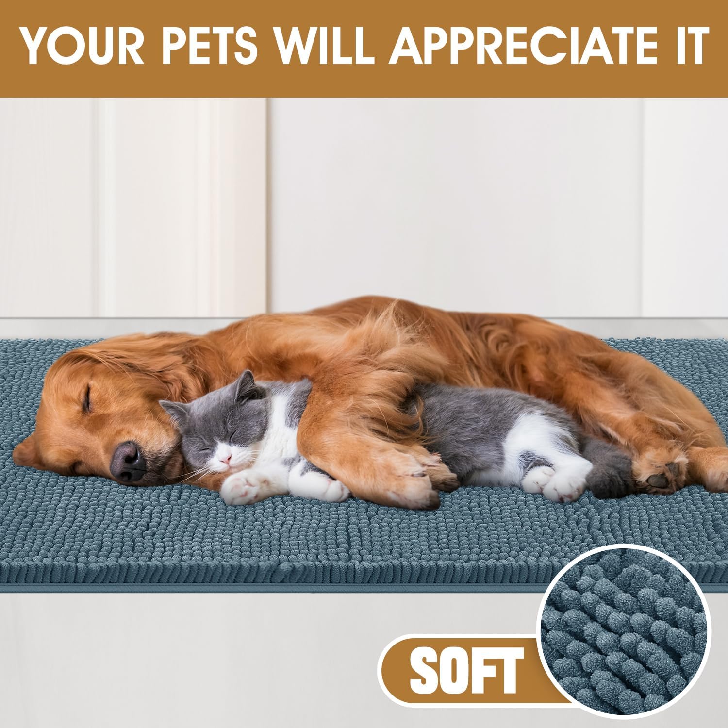 Extra Large Dog Door Mats for Muddy Paws, Chenille Absorbent Dog Mats, Non Slip Heavy Mud Mat for Dogs, Soft Pet Mat for Entryway, Mud Paws, Inside Floor,60" x 36", Dusty Blue