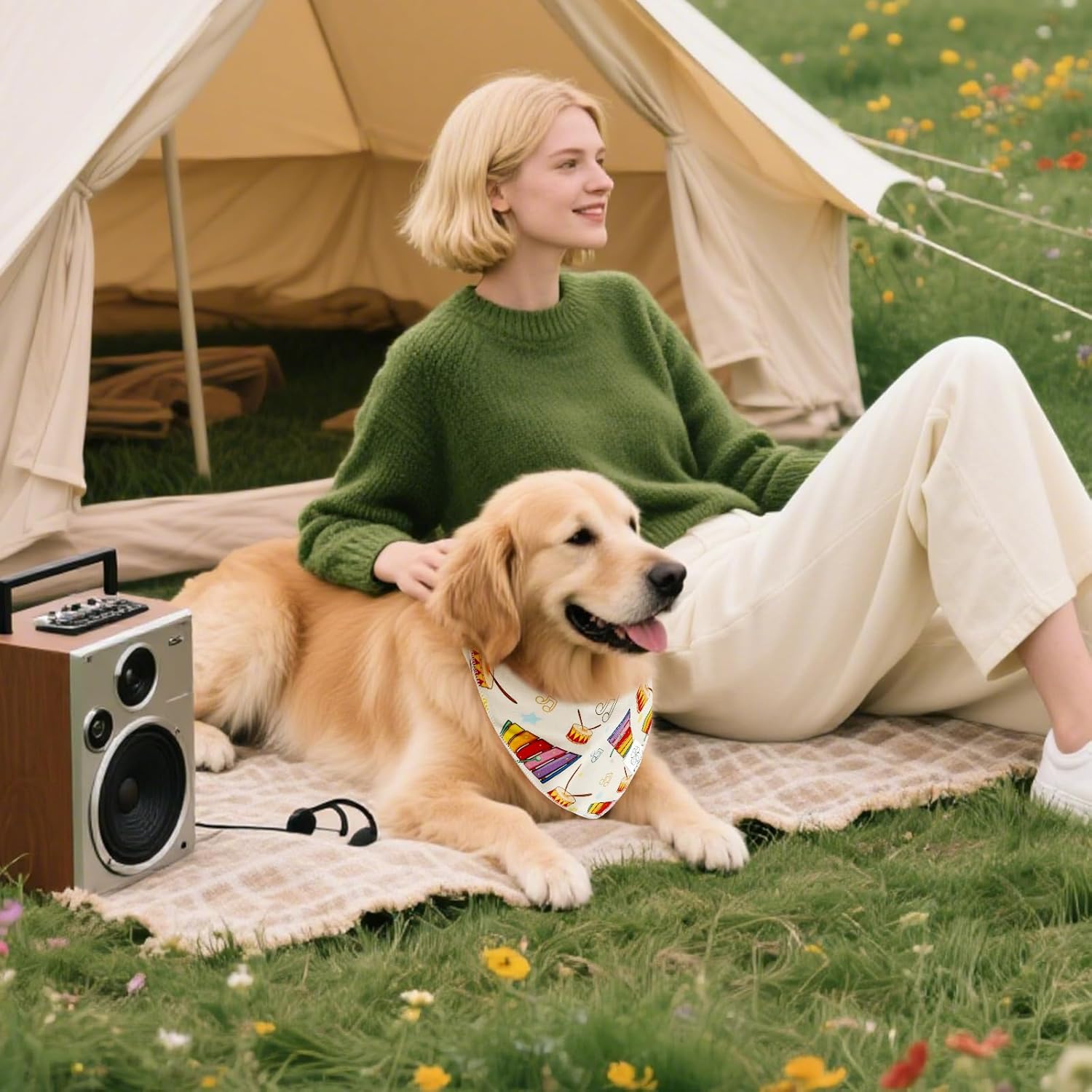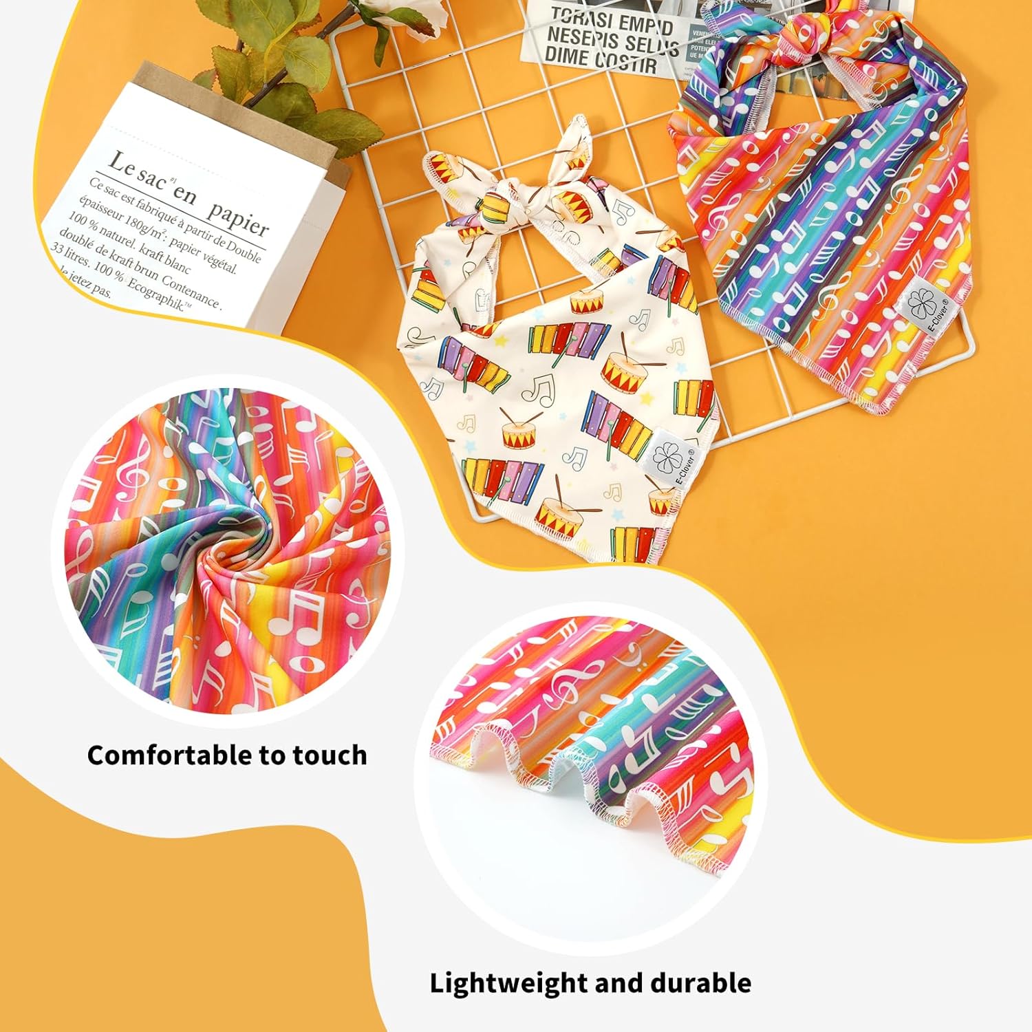 E-Clover Musical Notes Dog Bandanas Rainbow Scarf for Dog Boy Girl Cute Concert Costumes Accessories for Medium Large Dogs