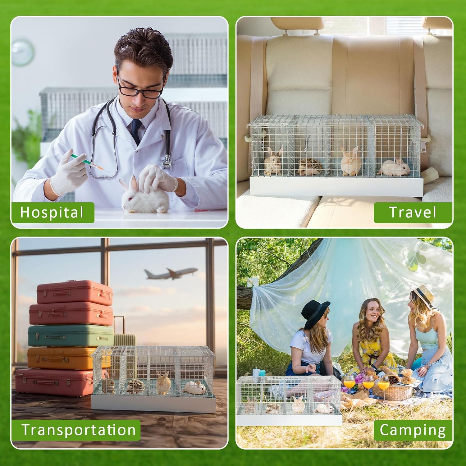 • Easy Transport with Carry Handles: designed for both short trips and extended outings, this bunny transport cage comes with sturdy handles on both sides for effortless carrying. Remove the divider to create a larger shared space when transporting more than one rabbit at a time. Ideal for travel, vet visits, outdoor events, or even as a temporary indoor pen