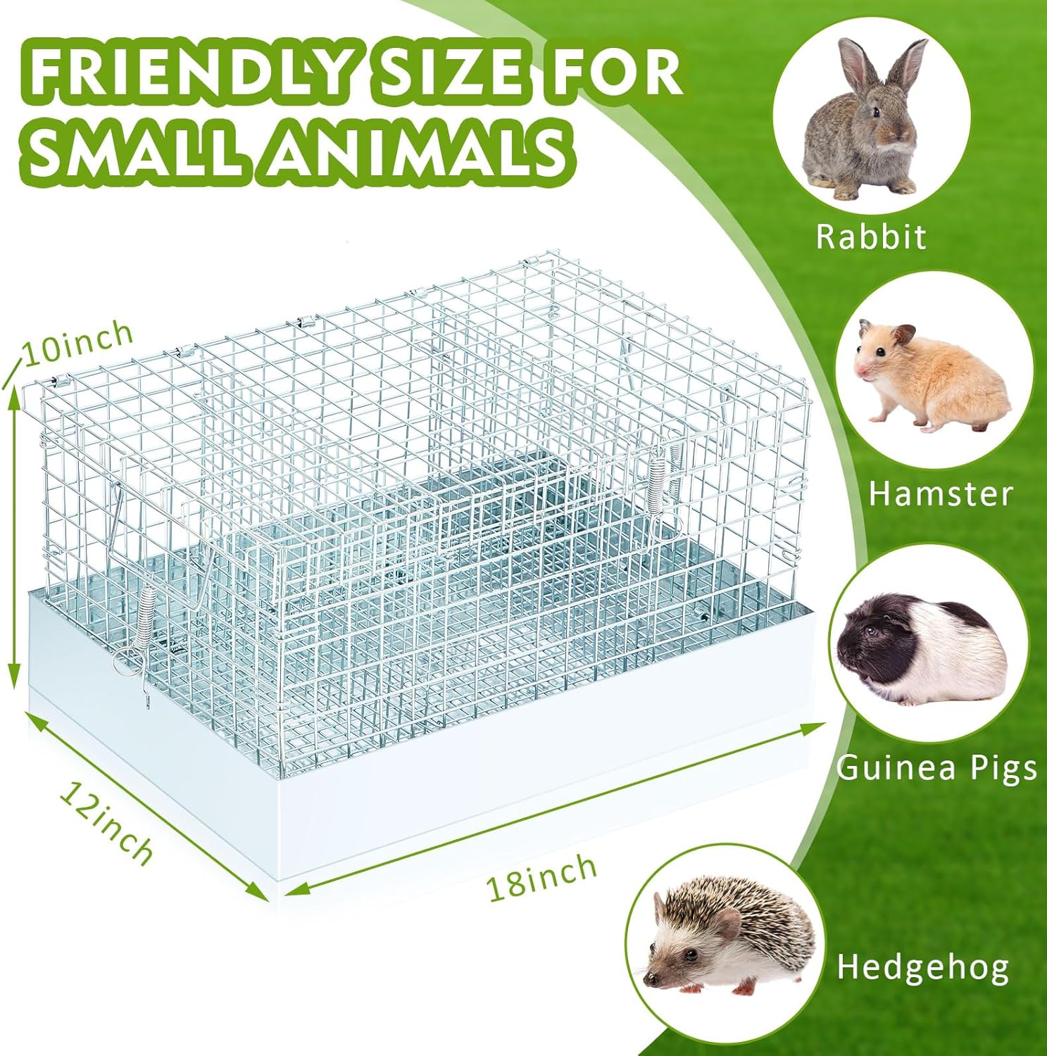 Folding Rabbit Cage, 18 x 12 x 10 in Portable Bunny Carrier with Tray and Handles for Transport, Travel or Temporary Housing, Indoor Outdoor Pet Habitat Animal Enclosure
