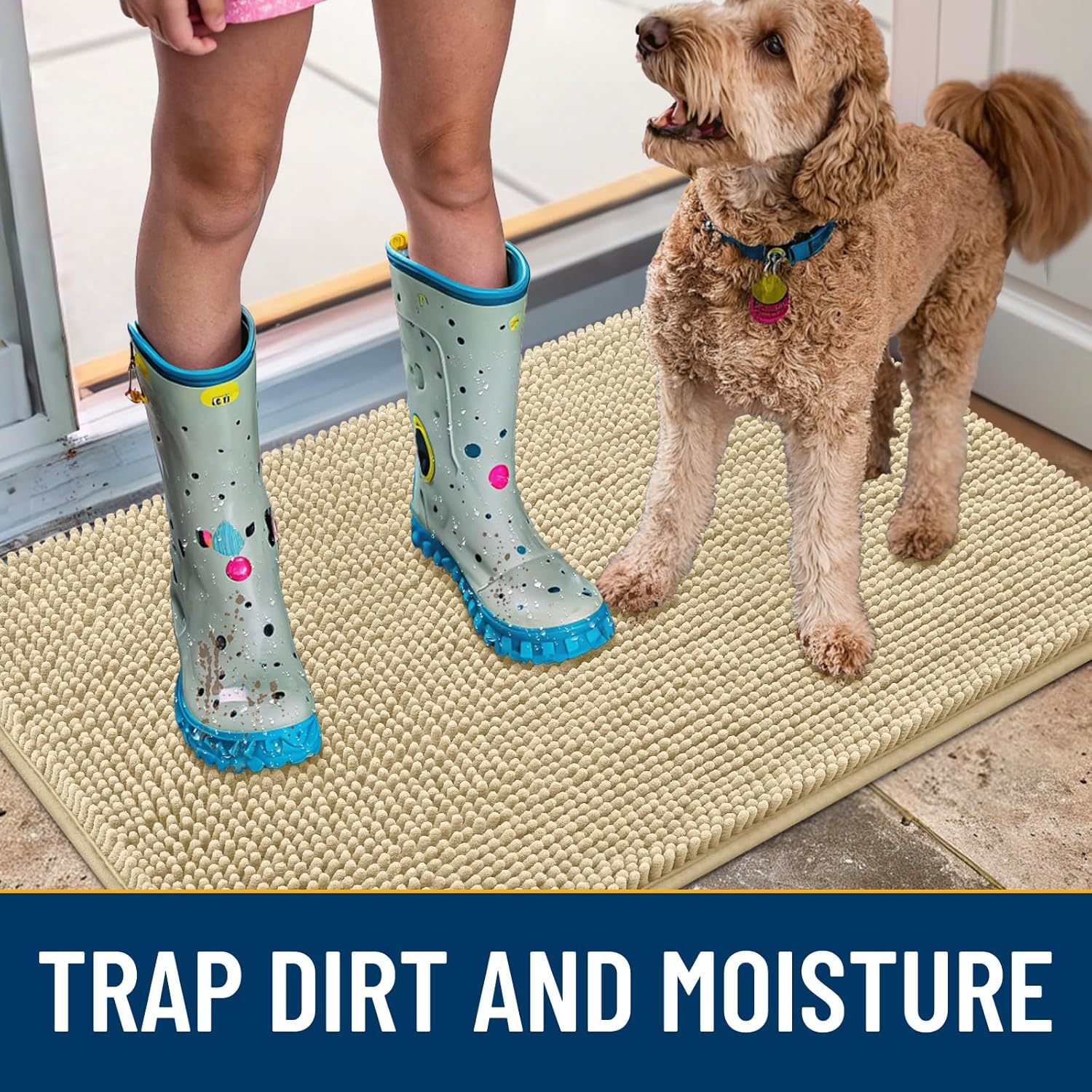 Smiry Dog Door Mat for Muddy Paws 36x24, Absorbs Moisture and Dirt Doormat, Non-Slip Washable Quick Dry Chenille Front Door Mat Indoor Entrance, Entryway Carpet for Inside Floor, Cream White