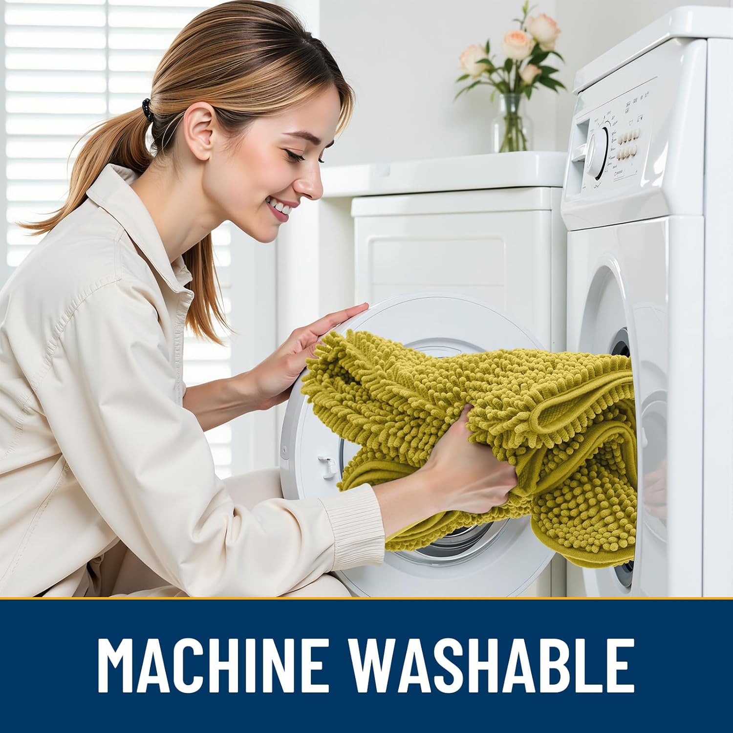 Smiry Dog Door Mat for Muddy Paws 30x20, Absorbs Moisture and Dirt Doormat, Non-Slip Washable Quick Dry Chenille Front Door Mat Indoor Entrance, Entryway Carpet for Inside Floor, Mustard Yellow