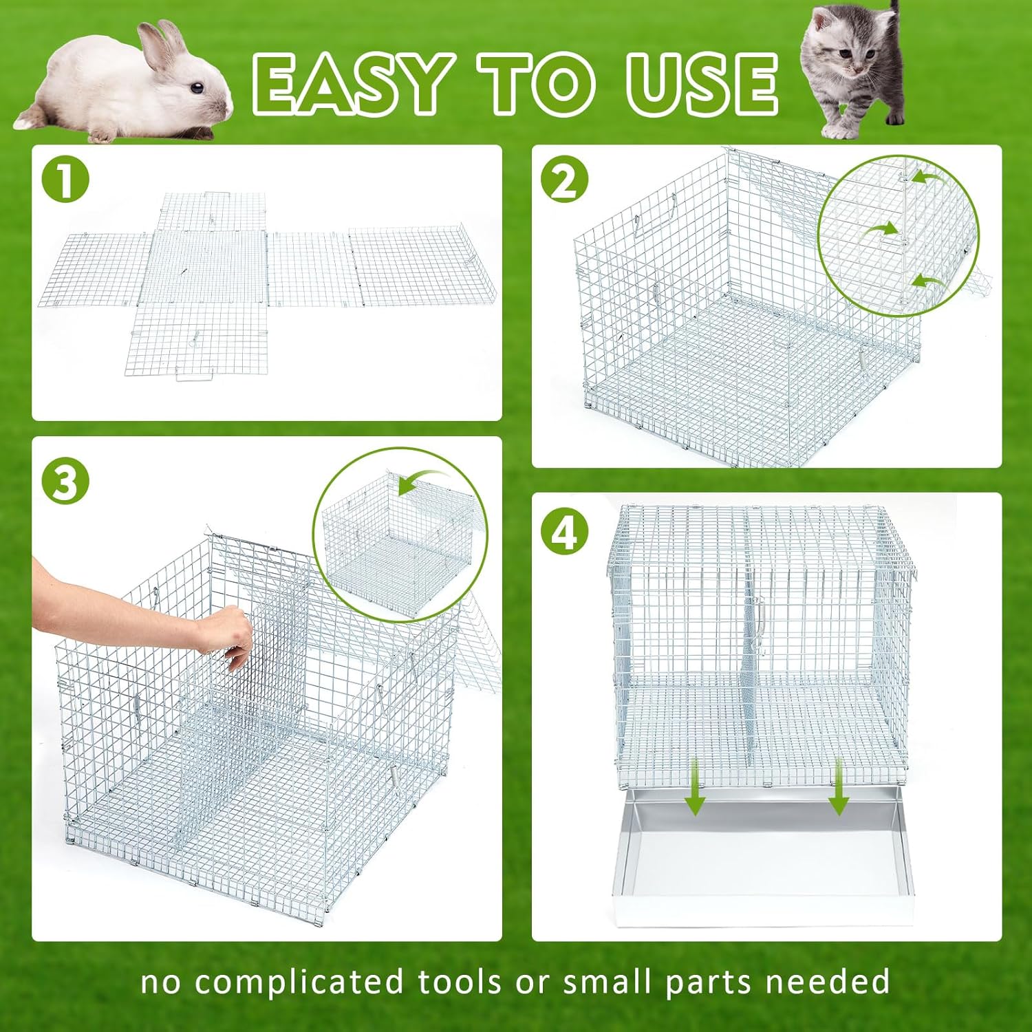 • Quick Setup & Foldable Storage: no complicated tools or small parts needed—this collapsible rabbit cage snaps together easily with built-in clips. When not in use, fold it flat for compact storage. A user-friendly setup makes it great for on-the-go families or first-time pet owners