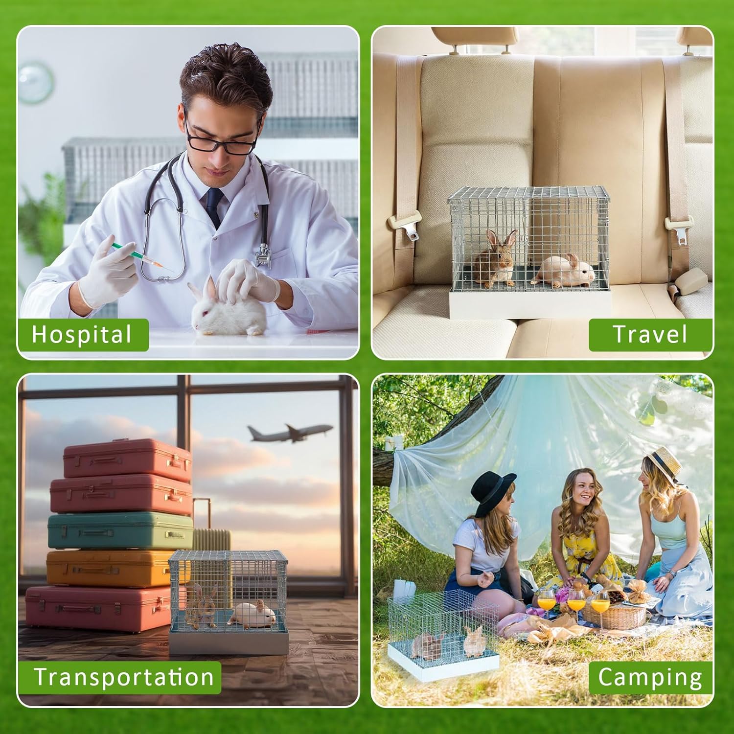 • Easy Transport with Carry Handles: designed for both short trips and extended outings, this bunny transport cage comes with sturdy handles on both sides for effortless carrying. Remove the divider to create a larger shared space when transporting more than one rabbit at a time. Ideal for travel, vet visits, outdoor events, or even as a temporary indoor pen