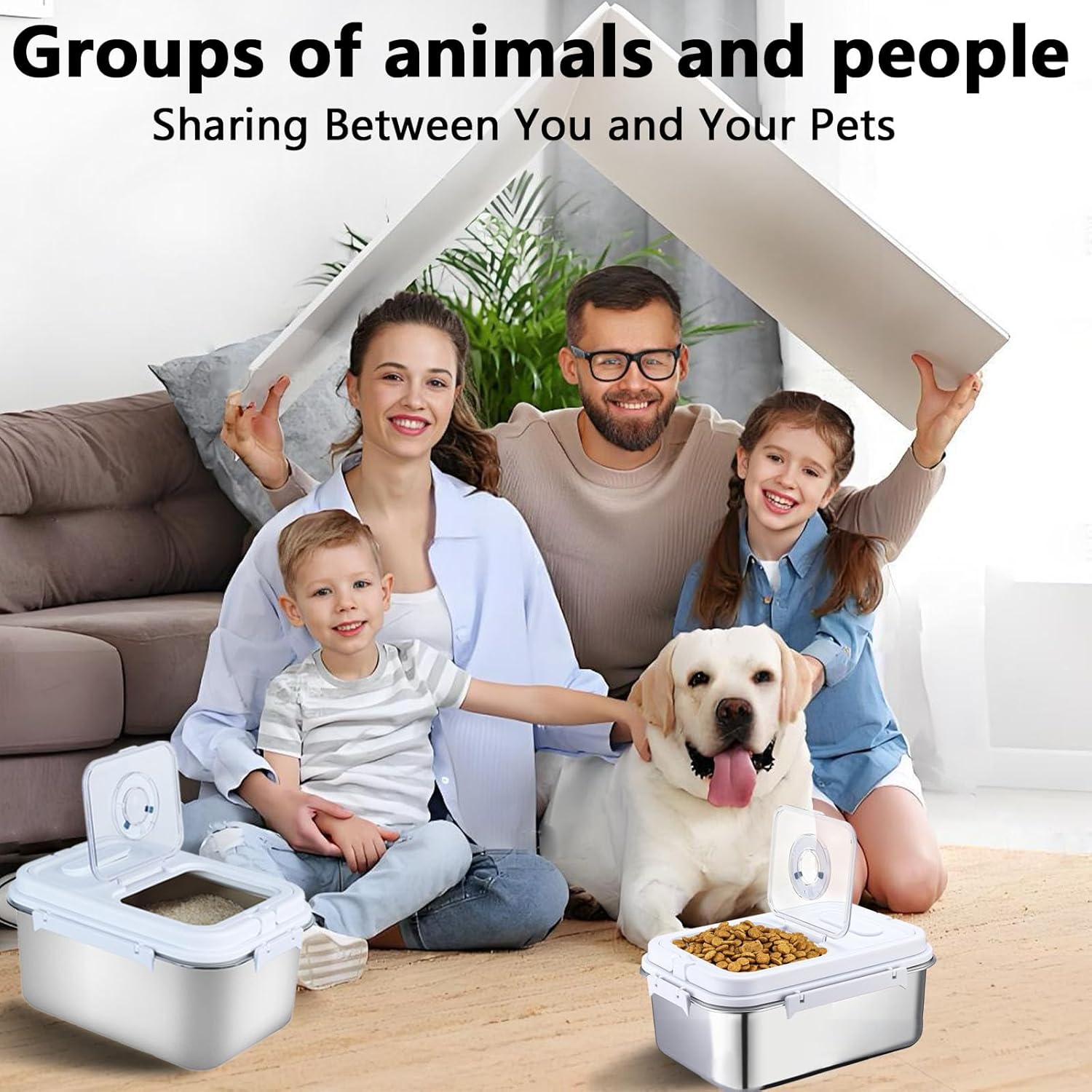 • 304 Stainless Steel Materials: Our dog food storage containers are made of 304 stainless steel, which is more durable and drop-resistant than ordinary plastic food storage buckets. Come with a stainless steel scoop is more durable than the plastic scoop, not easy to damage, and can be used for a long time.Can maximize the freshness of dry food and snacks, the stainless steel surface is not easy to adhere to food debris, providing you with a clean and orderly food storage area