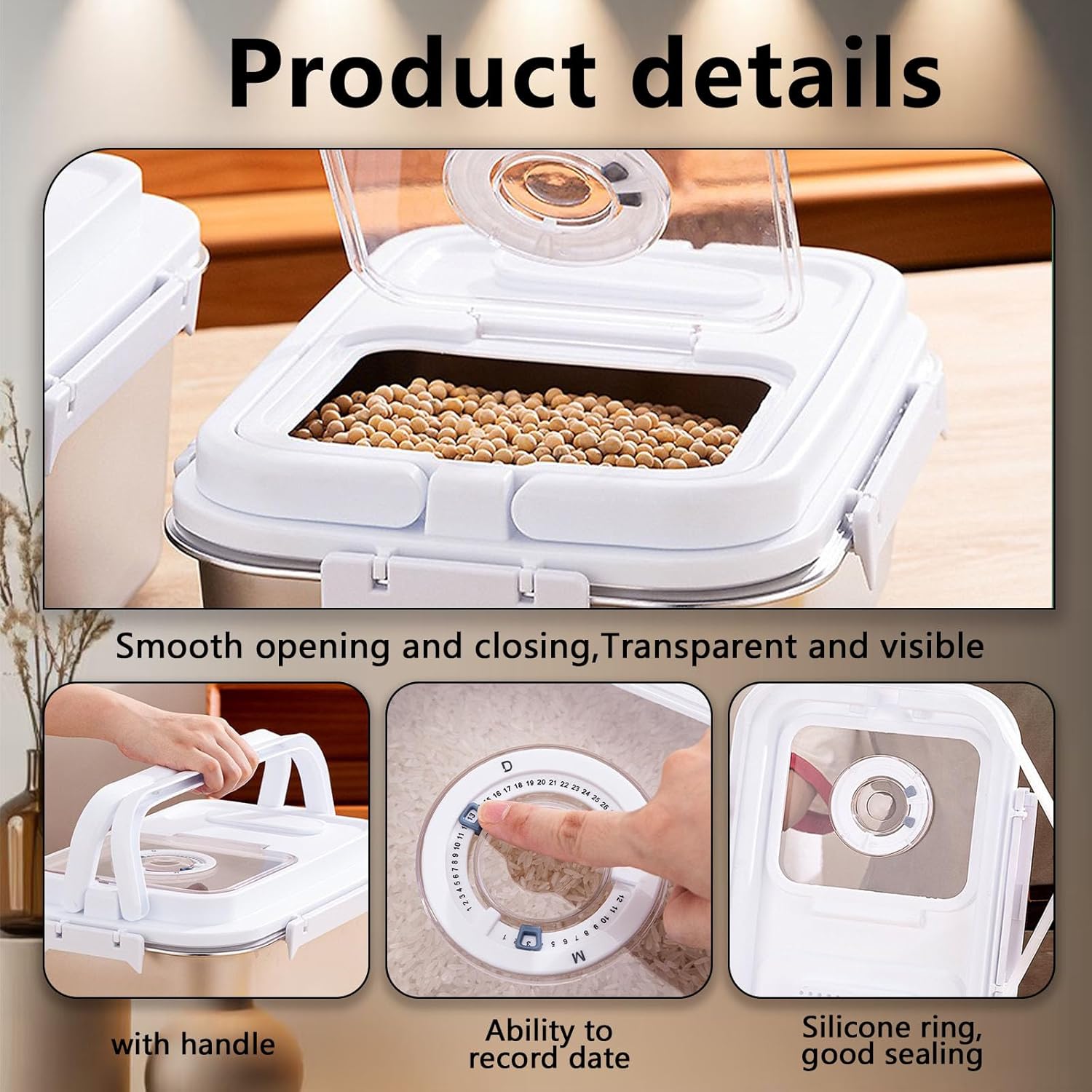 • Food Container with Time Recording: This pet bin is designed with a time recording dial, clearly record food storage time. You can adjust the exact storage month and day at will, never miss the best period for food.