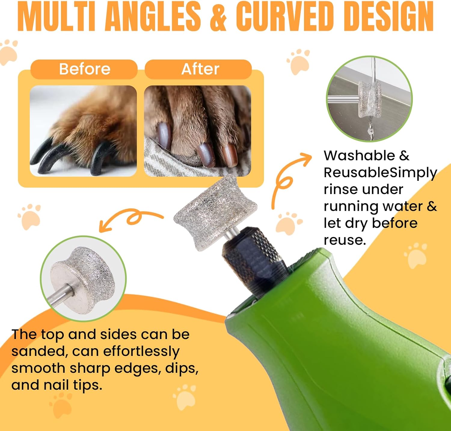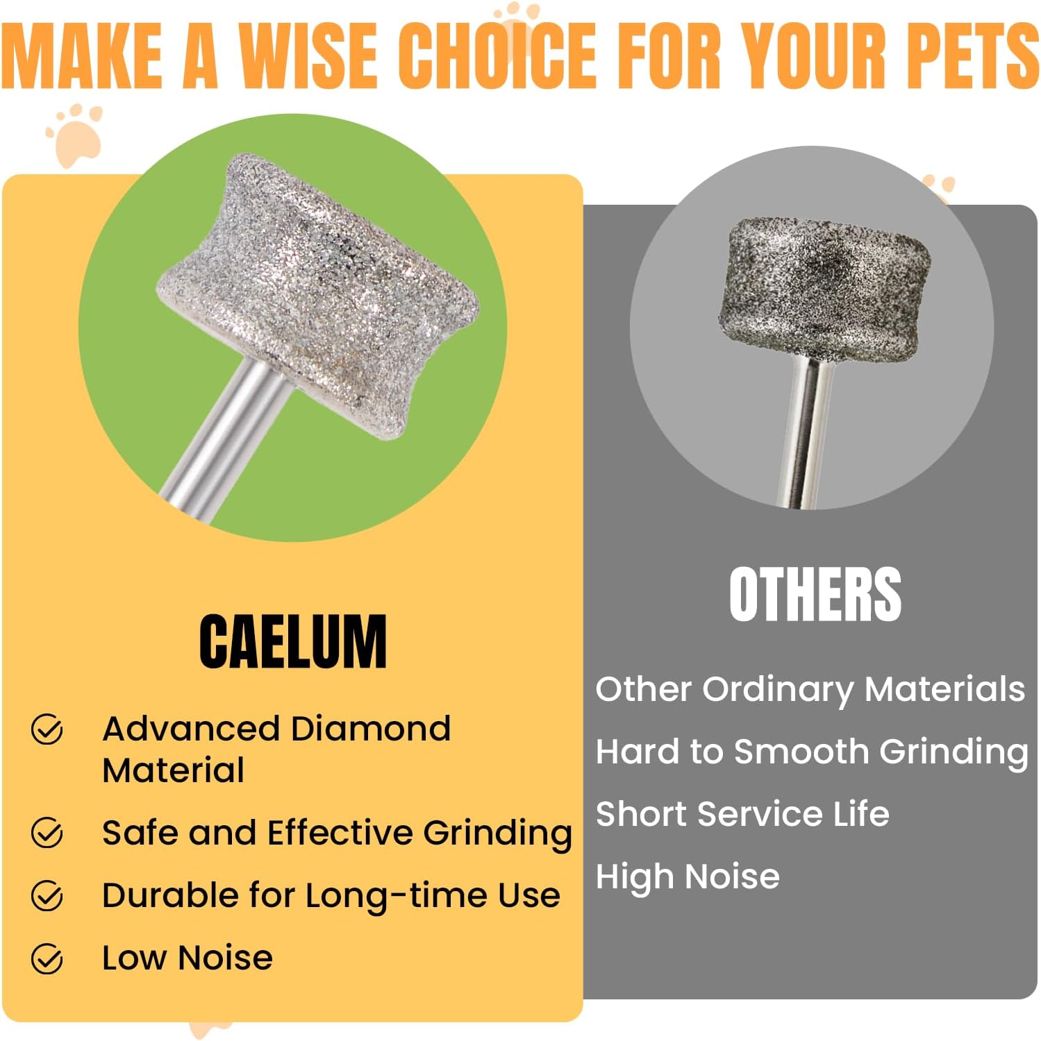 • [Durable & Rust-Resistant] Made with eco-friendly iron and stainless steel, plus an electroplated diamond grit head. It’s tough, and built to last through repeated grooming. Tip: For best results, use with a professional pet nail grinder. Let pets gradually get used to the tool's sound and vibration