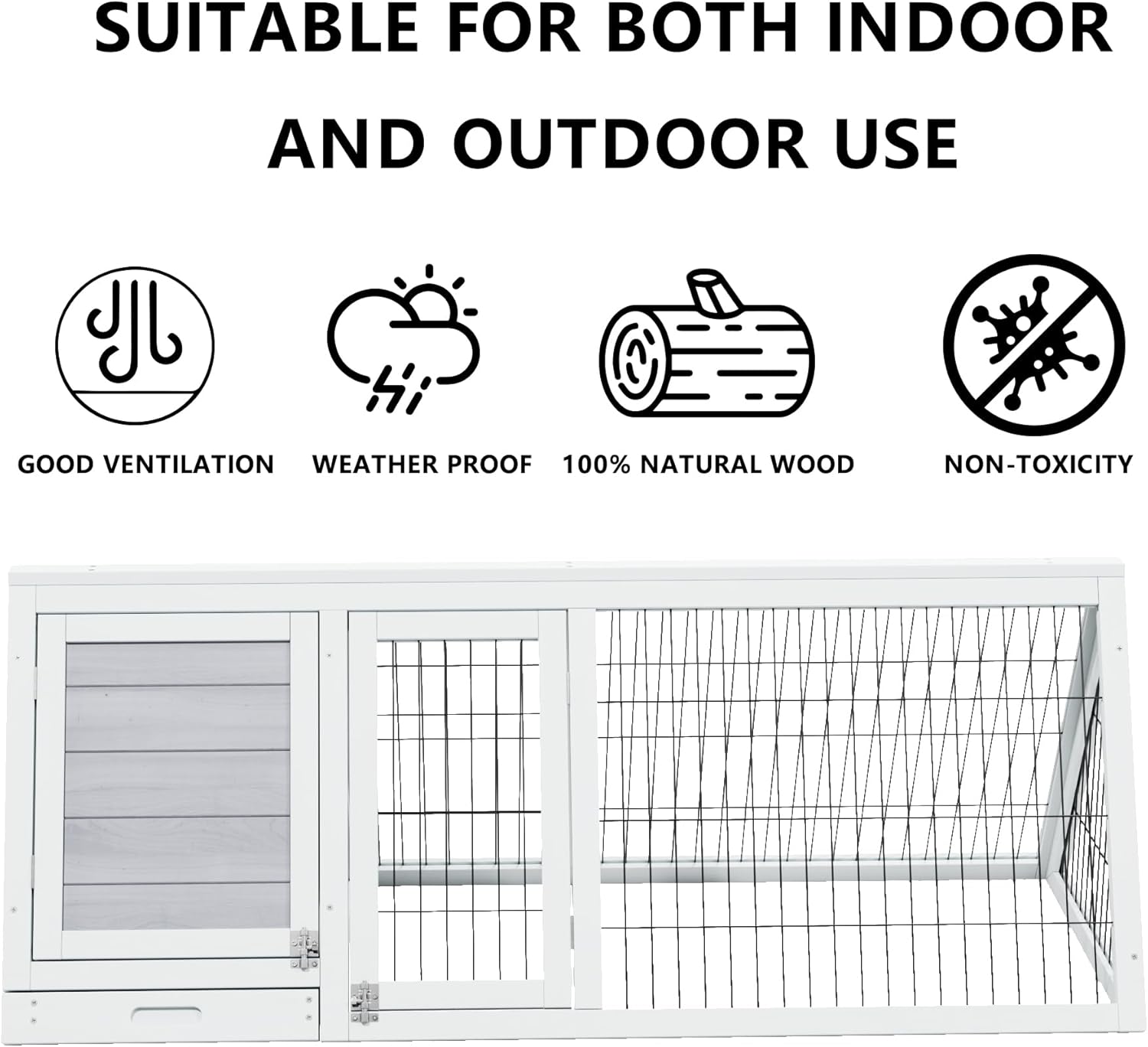 • Compact Size with Dual Zones: 46.45"L×19.7"W×17.52"H.This small chicken run features an open activity area for feeding and play, plus a sheltered resting zone (ideal as a brooder box for chicks) that’s waterproof and sun-protected. Perfect for chicken coops or multi-use setups.