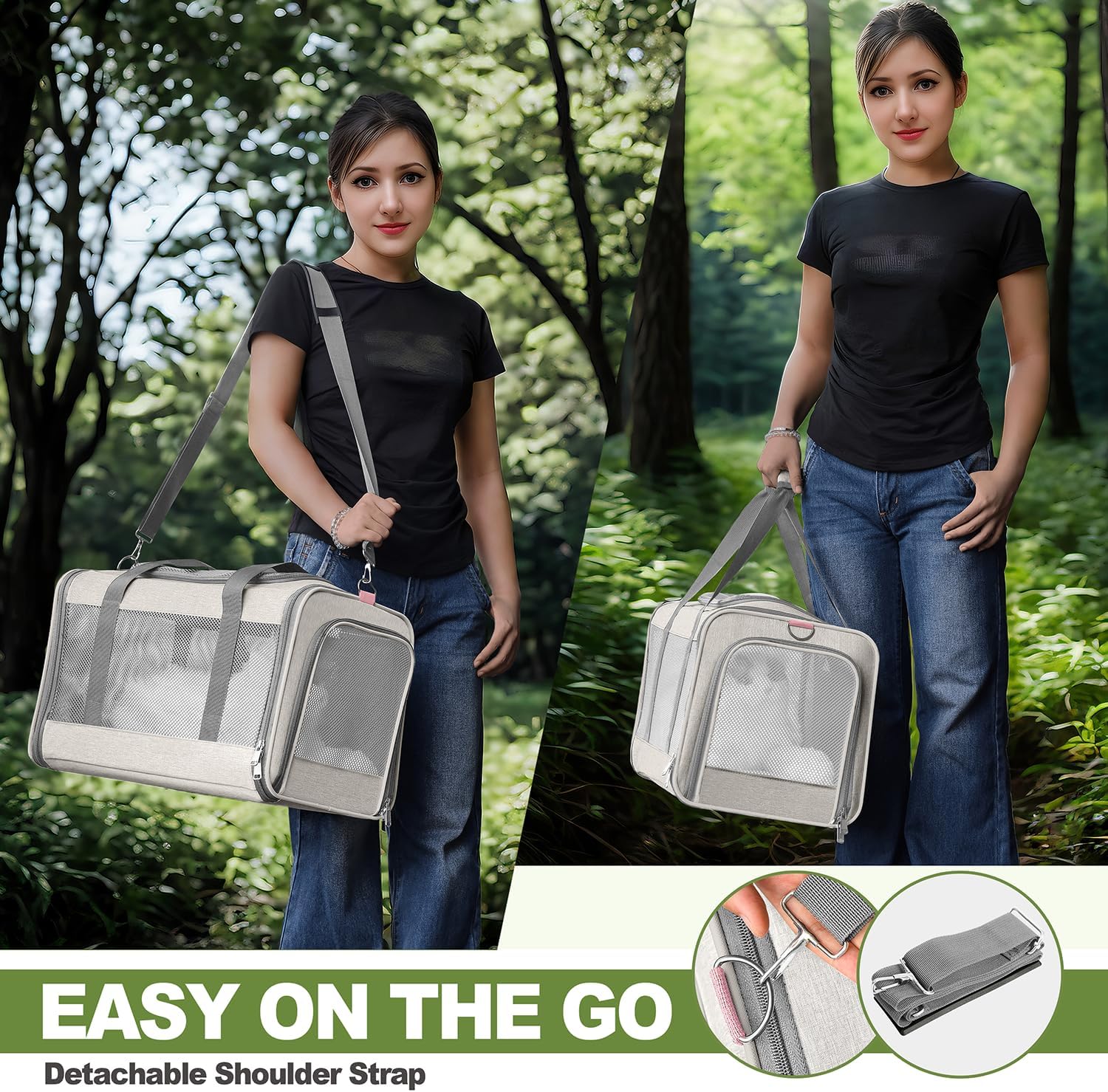 • Stress-Free Travel Ready Bag - Adjustable, detachable shoulder strap allows for hands-free carrying for doggies during airports trips or vet visits. Collapsible case can be stored flat for convenient storage