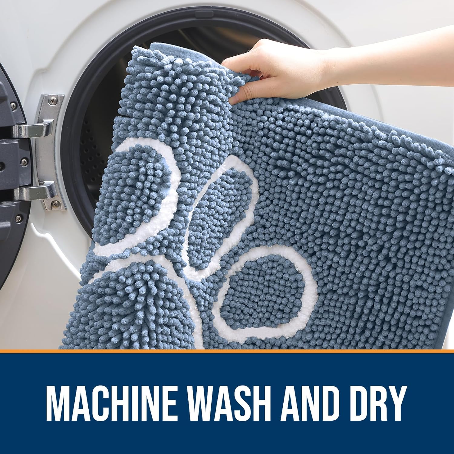 OLANLY Door Mat for Muddy Dog Paws 30x20, Absorbent Chenille Doormat with Paw Print Design, Non-Slip Washable Doormat for Indoor Entryway, Quick-Dry Pet Bed Mats for Dirty Dogs, Airy Blue and White