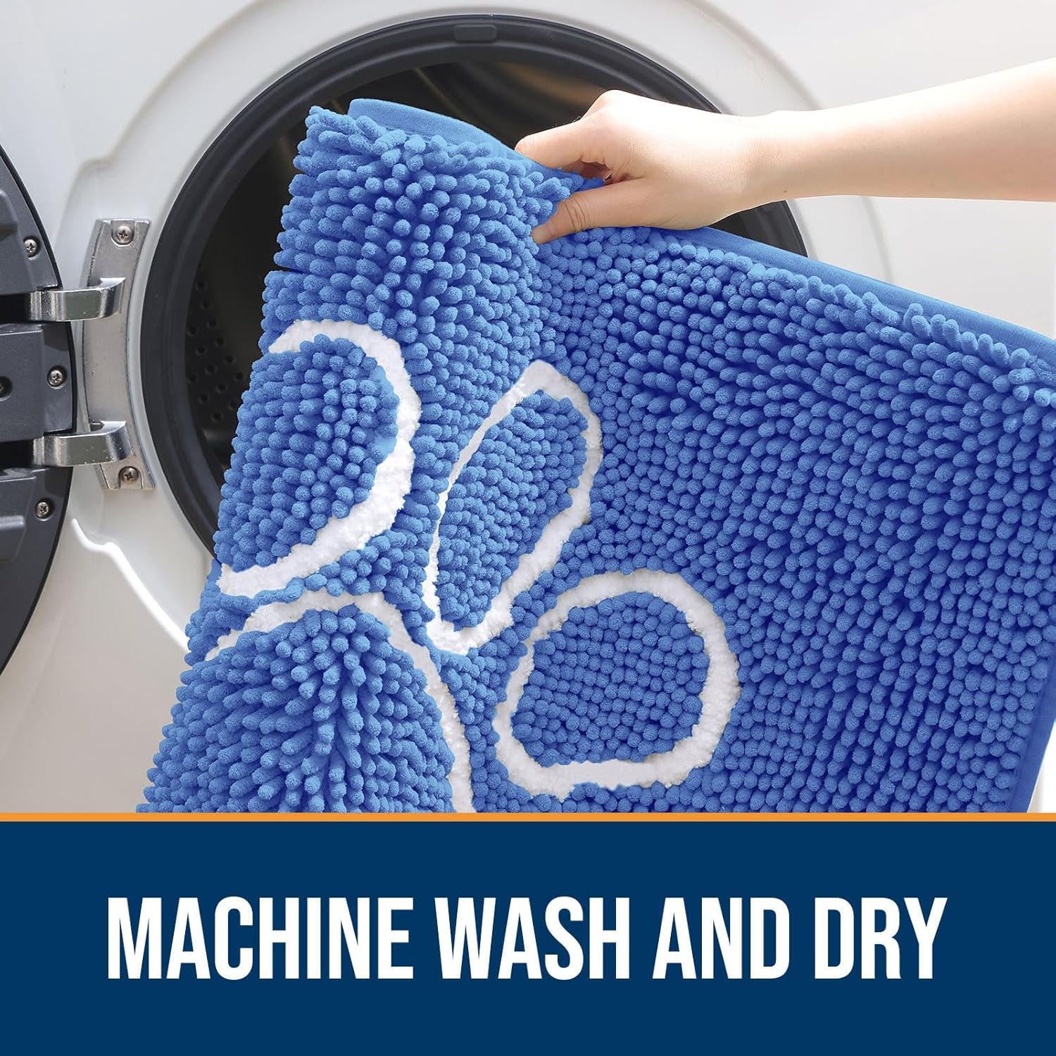 OLANLY Door Mat for Muddy Dog Paws 30x20, Absorbent Chenille Mud Doormat with Paw Print Design, Non-Slip Washable Doormat for Indoor Entryway, Quick-Dry Pet Bed Mats for Dirty Dogs, Cornflower Blue